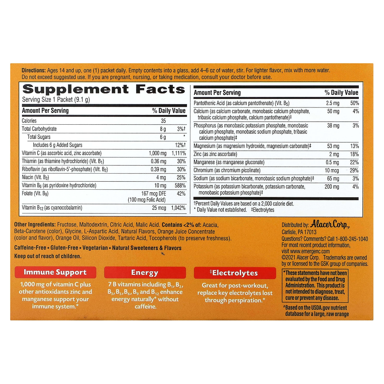 Emergen-C Vitamina C Mistura para Bebidas Gaseificadas com Sabor Super Laranja 1.000 mg 30 Pacotes 91 g (032 oz) Cada – Emergen-C Suplementos Vitaminas Vitamina C Ácido ascórbico Bebês e Crianças Saúde Infantil Saúde dos adolescentes.
