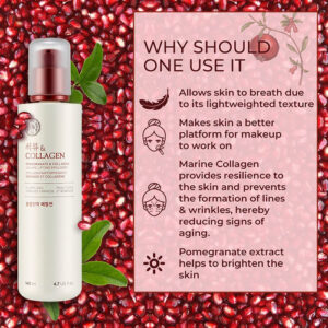 The Face Shop Pomegranate & Collagen Volume Lifting Emulsion Deep Revitalizing Emulsion for Moisture Barrier Strengthening Plump & Smoothen Your Skin, 4.7 Fl Oz – POMEGRANATE & COLLAGEN: A premium volume lifting line firms up and restores the sagging and sunken facial contours due to the synergy of pomegranate and collagen. – VOLUME LIFTING EMULSION: The anti-aging emulsion contains marine collagen and pomegranate which maintains hydration levels and restores wrinkles. – ULTRA MOISTURIZING & NOURISHING: With hyaluronic acid and cellulose gum, the skin helps retains moisture and keeps the skin healthy while betaine increases the skins moisture level and maintains moisture on your skin. – LOOK RADIANT: The hyaluronic acid and marine collagen increases the skins elasticity and makes it look radiant. – HOW TO USE: After using the essence, smooth over your face and neck with the lotion. Gently press the product in circular motions to aid absoption.