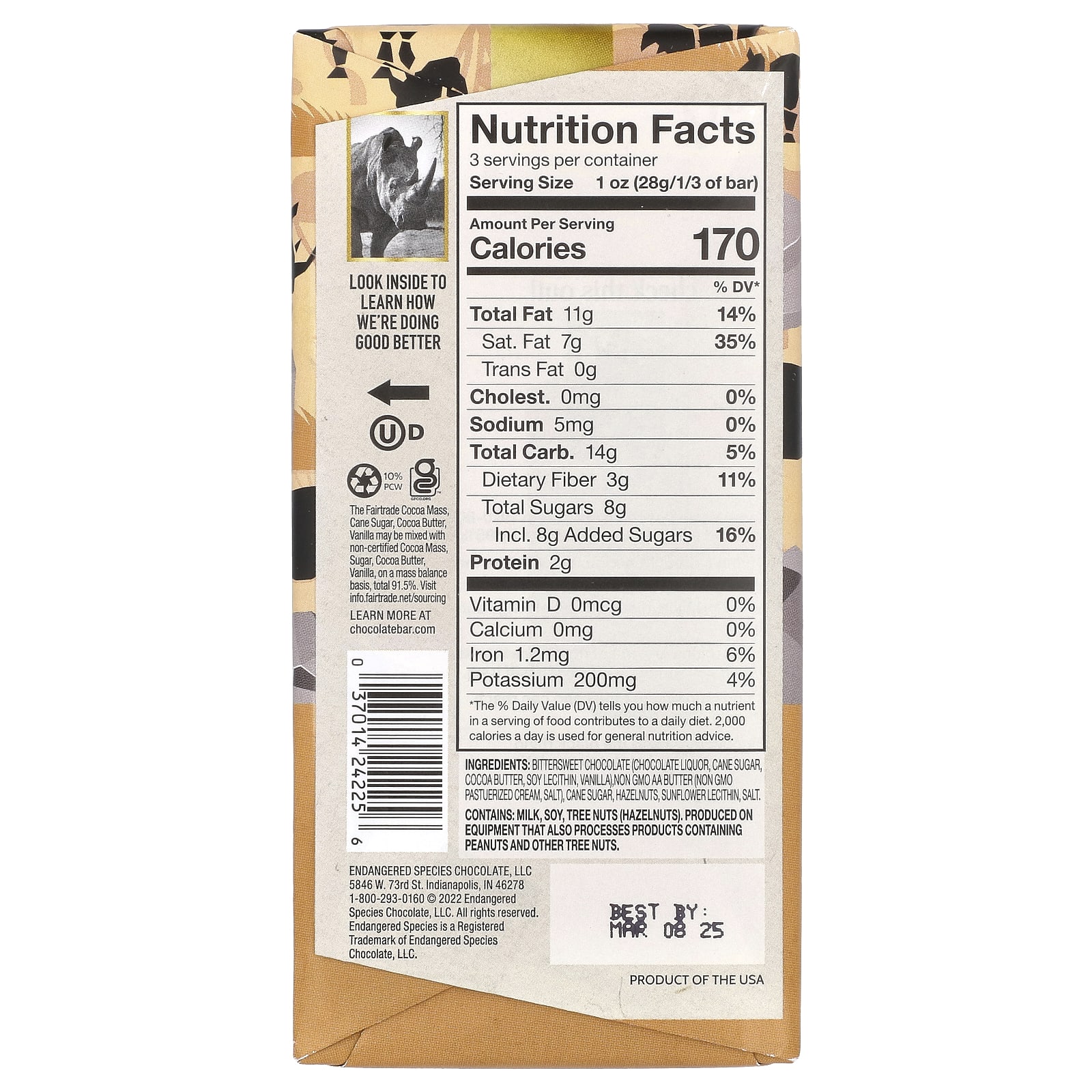 Endangered Species Chocolate Caramelo de Avelã + Chocolate Amargo 72% de Cacau 85 g (3 oz) – Endangered Species Chocolate Alimentos Chocolate e doces Chocolate Chocolate Amargo.
