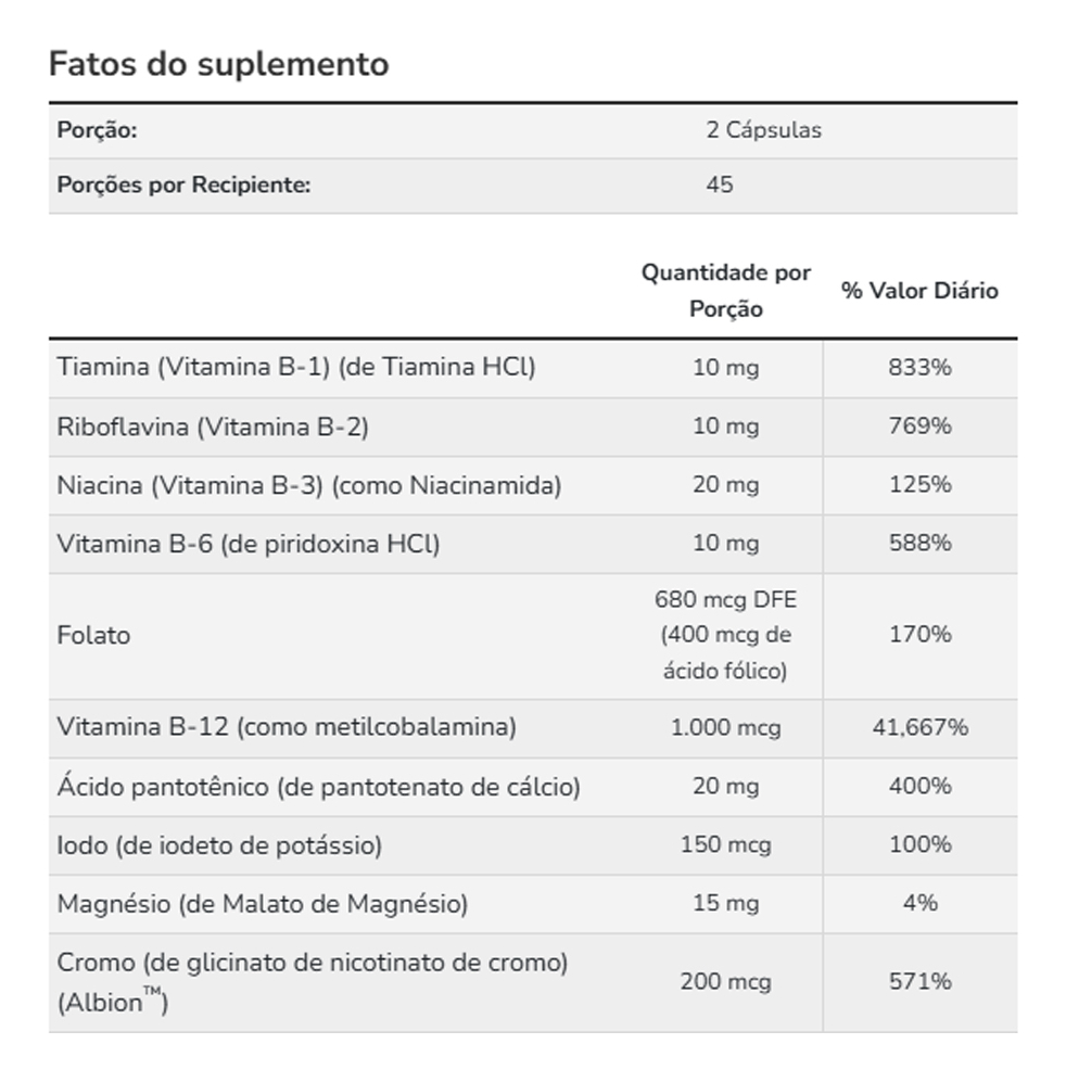 Com ingredientes selecionados, o produto conta com componentes como vitaminas e minerais que contribuem para sua funcionalidade. A formulação foi projetada para oferecer praticidade e suporte eficaz em cada cápsula. Validade longa