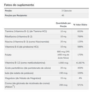Com ingredientes selecionados, o produto conta com componentes como vitaminas e minerais que contribuem para sua funcionalidade. A formulação foi projetada para oferecer praticidade e suporte eficaz em cada cápsula. Validade longa