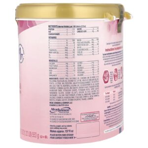 Leite desnatado, óleo vegetal (contém um ou mais dos seguintes ingredientes: óleo de oleína de palma, óleo de coco, óleo de soja, óleo de girassol com alto teor oleico), amido de arroz, lactose, maltodextrina, galacto-oligossacarídeos†, polidextrose†, e menos de 1%: óleo de Mortierella alpina‡, schizochytrium sp. óleo§, carbonato de cálcio, sulfato ferroso, sulfato de zinco, citrato de sódio, cloreto de potássio, óxido de magnésio, citrato de potássio, iodeto de potássio, sulfato cúprico, sulfato de manganês, selenito de sódio, cloreto de colina, ácido ascórbico, nicotinamida, pantotenato de cálcio, vitamina D3, riboflavina, cloridrato de tiamina, cloridrato de vitamina B6, ácido fólico, vitamina K1, biotina, vitamina B12, inositol, acetato de vitamina E, vitamina A (palmitato), taurina, l-carnitina.