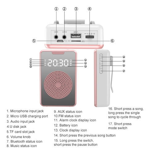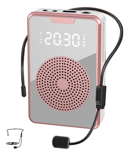 Amplificador de microfone de ensino portátil ZXL-H3 com exibição de tempo, versão com fio específica (ouro rosa). 1. Material ABS, componentes eletrônicos