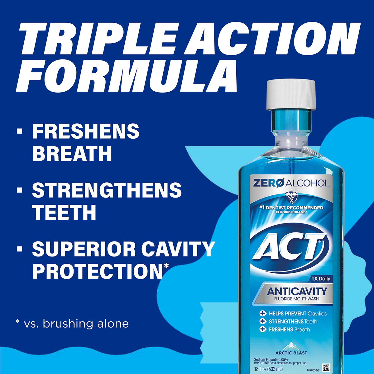 Enxaguante bucal ACT Anticavity Zero Alcohol Fluoreto de 18 fl. oz., com copo dosador preciso, Arctic Blast – Contém um (1) frasco de 18 onças fluidas de enxaguante bucal ACT Anticavity Zero Alcohol Flavor – ZERO ÁLCOOL: Este produto de higiene bucal ACT é um enxaguante bucal sem álcool – 3 BENEFÍCIOS EM 1: Este enxaguante bucal com flúor foi desenvolvido para ajudar a prevenir cáries e fortalecer dentes e refresque o hálito – Copo de dosagem preciso: obtenha a dose certa de flúor com o medidor de dosagem fácil de usar – Marca recomendada pelo dentista: O enxaguante bucal ACT Fluoride é o dentista recomendado pelo dentista marca de flúor