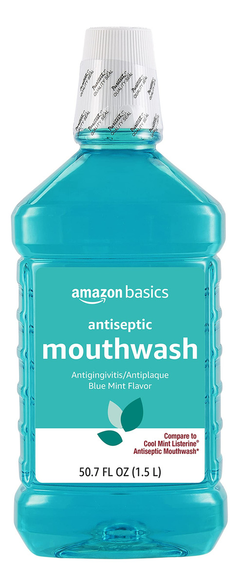 Enxaguante bucal antisséptico Amazon Basics, hortelã azul, 1,5 litros, 50,7 onças fluidas, 1 pacote (anteriormente Solimo) – Um frasco de 1,5 litro de enxaguante bucal antisséptico de menta azul – Ajuda a controlar a placa que leva à gengivite – Ajuda a melhorar a higiene bucal e controla o mau hálito – Sabor de menta azul – Use de manhã e à noite para uma melhor higiene bucal – Se você gosta do enxaguante bucal antisséptico Listerine, convidamos você a experimentar Enxágue antisséptico multiação Amazon Basics — a compra por voz da Alexa está ativada: para fazer seu próximo pedido, basta dizer, Alexa, reordenar o enxaguante bucal Amazon Basics”