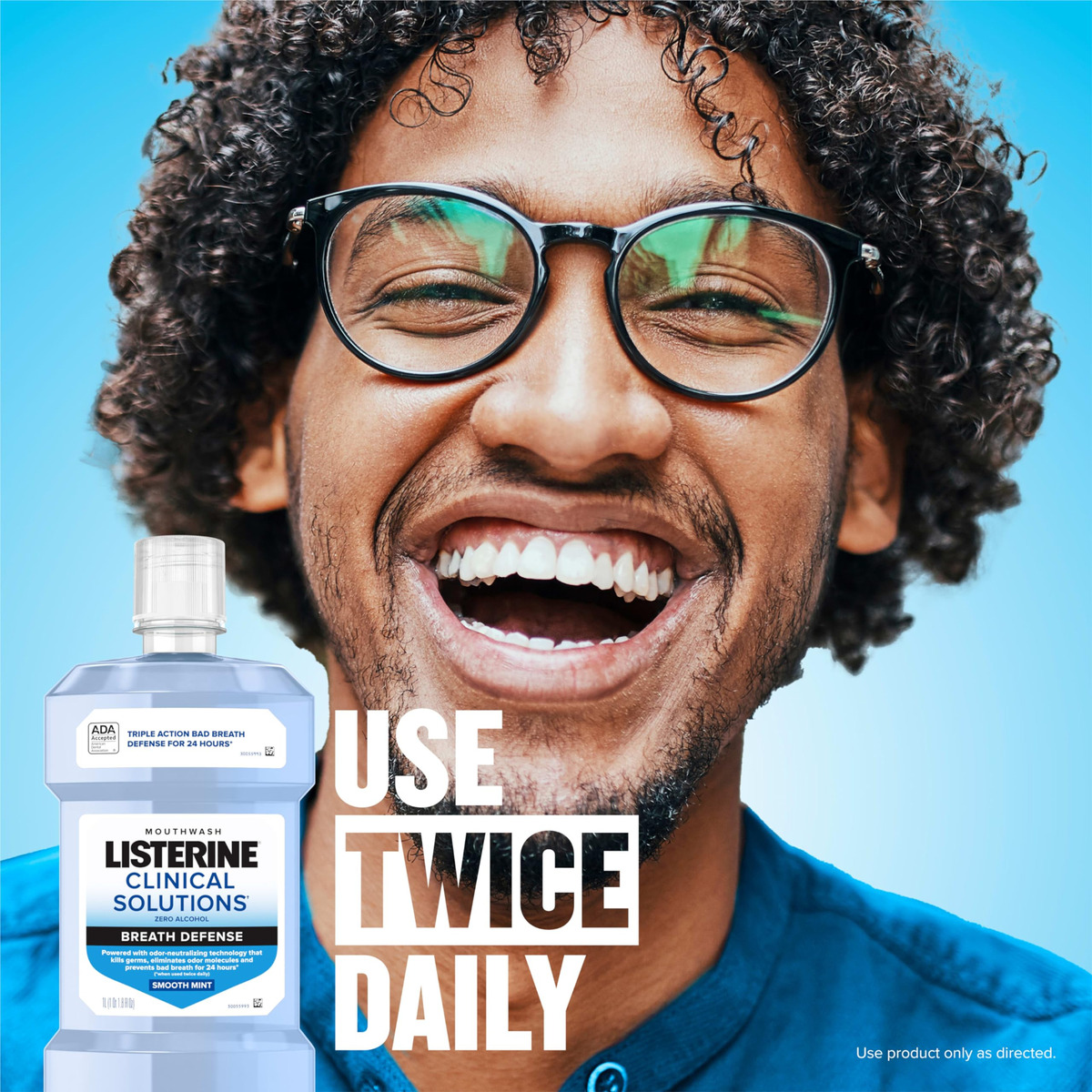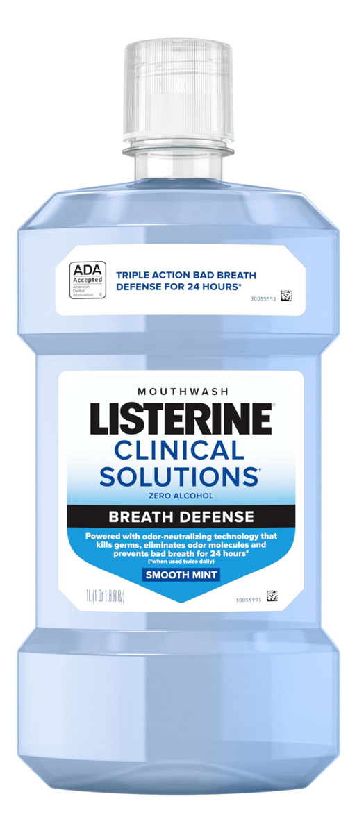 Enxaguante bucal sem álcool Listerine Clinical Solutions Breath Defense, enxaguante bucal sem álcool com fórmula de tripla ação combate o mau hálito por 24 horas, enxágue oral suave de menta, 1 litro a 1 litro de enxaguante bucal Listerine Clinical Solutions Breath Defense sem álcool com sabor suave de menta, um enxágue oral sem álcool para combater o odor e obter hálito fresco o dia todo – O enxaguante bucal sem álcool é alimentado com tecnologia de neutralização de odores que mata germes, purifica moléculas de odor e previne o mau hálito – Este enxágue oral de menta com uma fórmula avançada de ação tripla combate o mau hálito por 24 horas* *quando usado duas vezes ao dia – Adultos e crianças de 12 anos ou mais, use este enxaguatório bucal clínico duas vezes ao dia, agitando com 20 mL por 30 segundos. Crianças de 6 a 11 anos, enxágue duas vezes ao dia com 10 mL. Não engula enxaguante bucal — Testado por dentistas e higienistas, este enxaguante bucal suave com menta auxilia na prevenção do mau hálito para uma sensação refrescante na boca, tornando-o um complemento perfeito para sua rotina de higiene bucal duas vezes ao dia