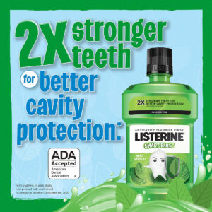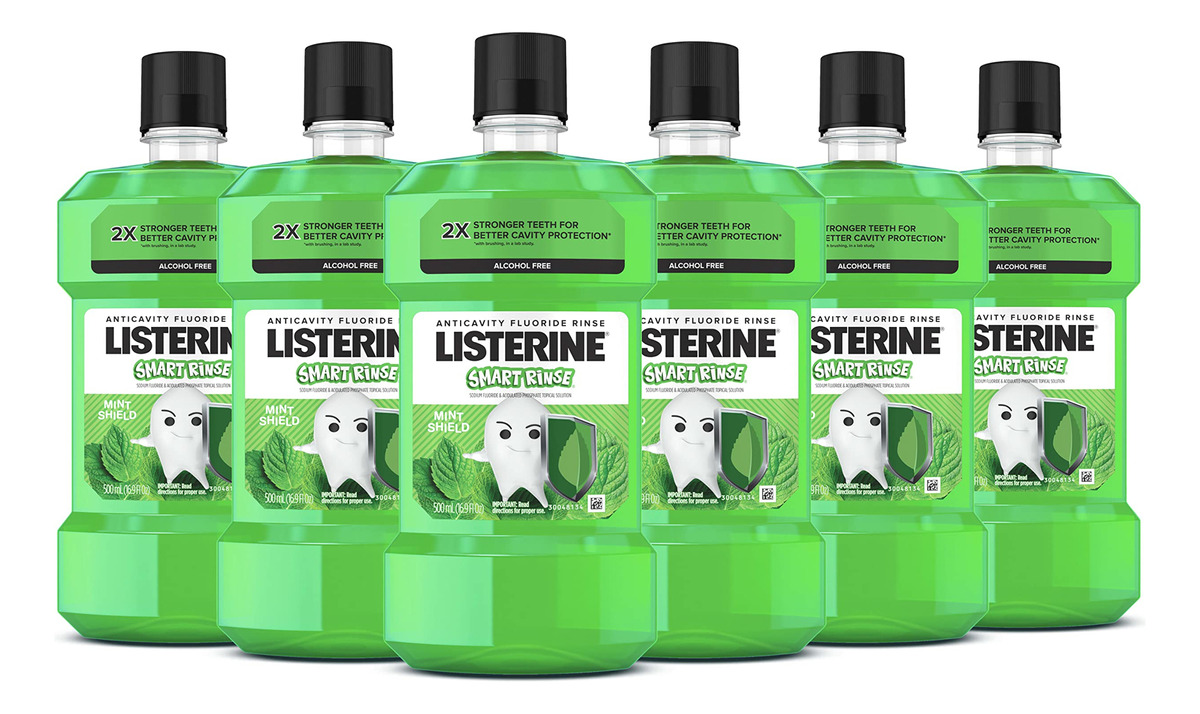 Enxaguante bucal infantil Listerine Smart Rinse, aceito pela ADA, enxaguante bucal anticavitário sem álcool, enxágue oral para proteção da cavidade dentária, sabor Mint Shield para higiene bucal infantil, 500 ml a 500 mililitros de enxaguante bucal Listerine Smart Rinse sem álcool para crianças com sabor de menta para fortalecer e proteger os dentes contra cáries quando usado como parte de uma rotina regular de higiene bucal – Formulado com fluoreto de sódio e fosfato acidulado, este enxágue oral infantil sem álcool limpa a boca além da escovação e ajuda a prevenir cáries dentárias difíceis de alcance lugares onde a escovação possa faltar – O enxaguante bucal Anticavity limpa removendo e tingindo partículas e detritos de alimentos para que seu filho possa ver facilmente as evidências na pia de uma boca mais limpa. O enxágue bucal infantil também refresca o hálito matando 99% dos germes do mau hálito – Em um estudo de laboratório, o enxaguante bucal infantil Smart Rinse ofereceu duas vezes mais fortes para melhor proteção da cavidade dentária com escovação em vez de escovar sozinho quando usado duas vezes ao dia – Este enxaguante bucal é aceito pela Associação Dentária Americana (ADA) para ajudar a prevenir cáries e vem em um divertido sabor Mint Shield para crianças. Para usar, enxágue vigorosamente com 10 mL (2 colheres de chá) colheres) do enxaguatório bucal com flúor por 1 minuto, 2x por dia