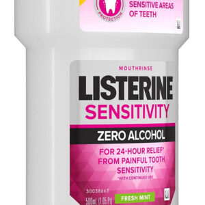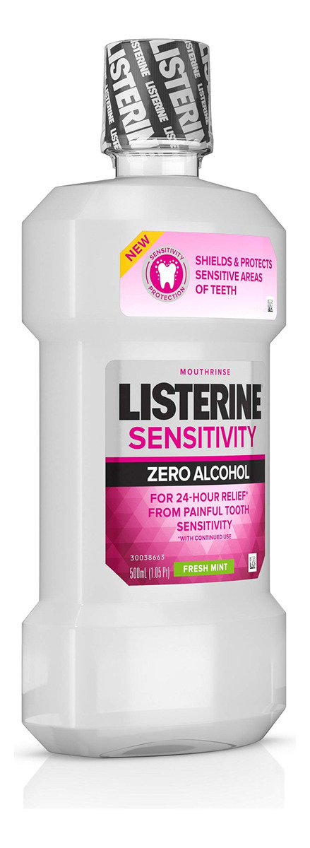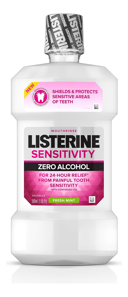 Listerine, enxaguante bucal sem álcool, alívio de 24 horas para dor na sensibilidade dentária, hortelã fresca, 16,9 ml — Para uma limpeza suave que não queime a boca. — Incomoda seus dentes sensíveis. — Quando usado duas vezes ao dia após a escovação.