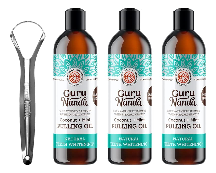 O óleo de coco GuruNanda, com 7 óleos essenciais naturais e vitamina D, E, K2, enxaguante bucal sem álcool (Mickey D), ajuda no hálito fresco, no clareamento dos dentes e na saúde das gengivas – o óleo de extração GuruNanda Mickey D (pacote com 3) é um enxaguante bucal ayurvédico holístico em três frascos de 8 fl oz, promovendo a saúde dos dentes e gengivas para um hálito fresco. Um raspador de língua também está incluído dentro da caixa. – É uma mistura 100% pura e natural de ingredientes: óleo de coco, óleos essenciais (melaleuca, hortelã, cravo, orégano, erva-doce, hortelã e cardamomo) e vitaminas D3, E e K2 para gengivas saudáveis e boca limpa. – Swishing GuruNanda Mickey D's Pulling Oil ajuda a limpar profundamente a boca e ajuda na produção de saliva, promove a remoção da placa bacteriana e apoia dentes e gengivas saudáveis, para um sorriso mais brilhante e um hálito mais fresco. – Despeje 10-15 ml de óleo, mexa por 2 minutos e aumente gradualmente para 10 minutos. Jogue o óleo no lixo para evitar entupir os canos. Mantenha o estômago vazio todas as manhãs para obter os melhores resultados. – Orgulhosamente feito nos EUA com ingredientes nacionais e internacionais, é feito de álcool, flúor ou conservantes adicionados e é seguro para uso por adultos e crianças com menos de 12 anos de idade (sob supervisão).