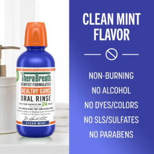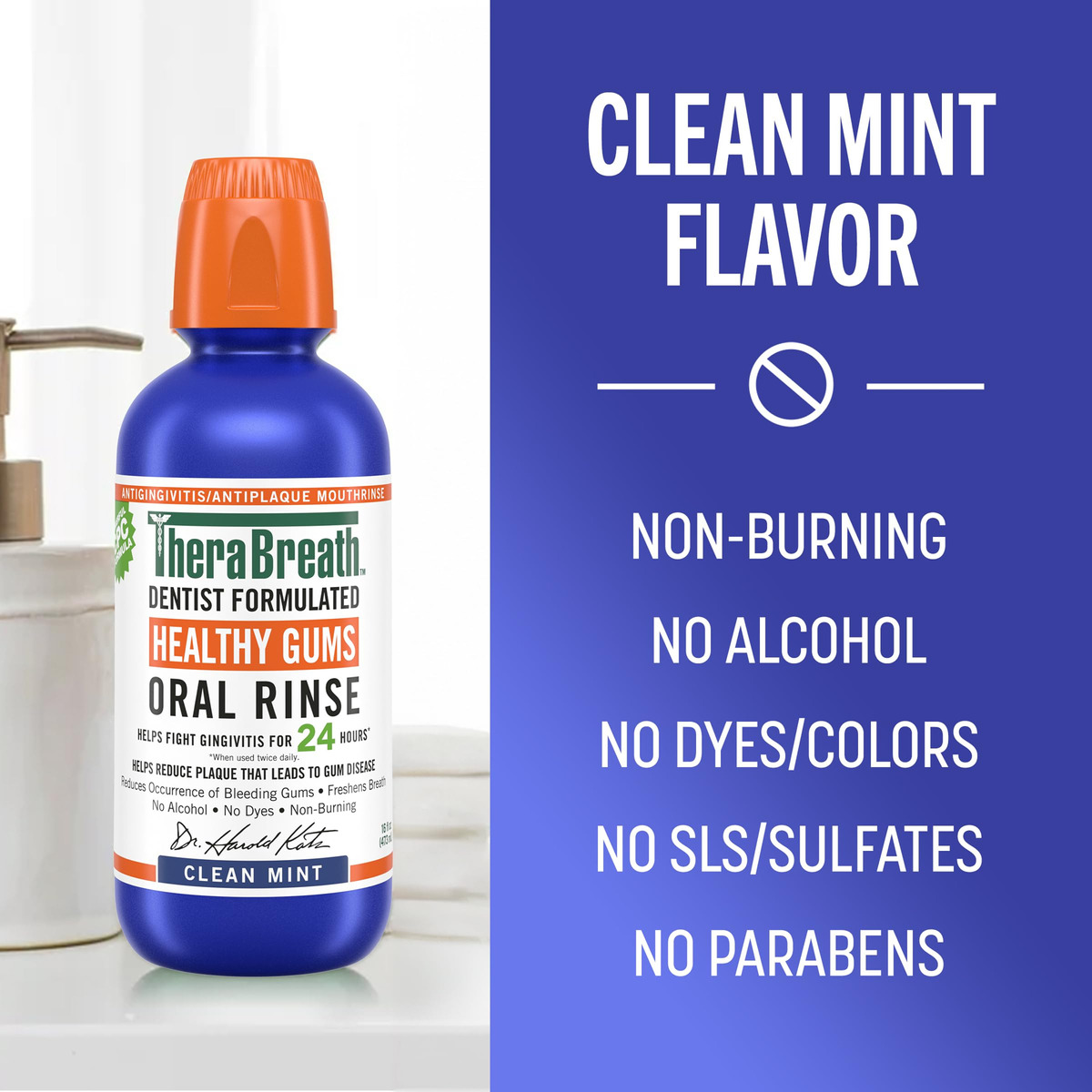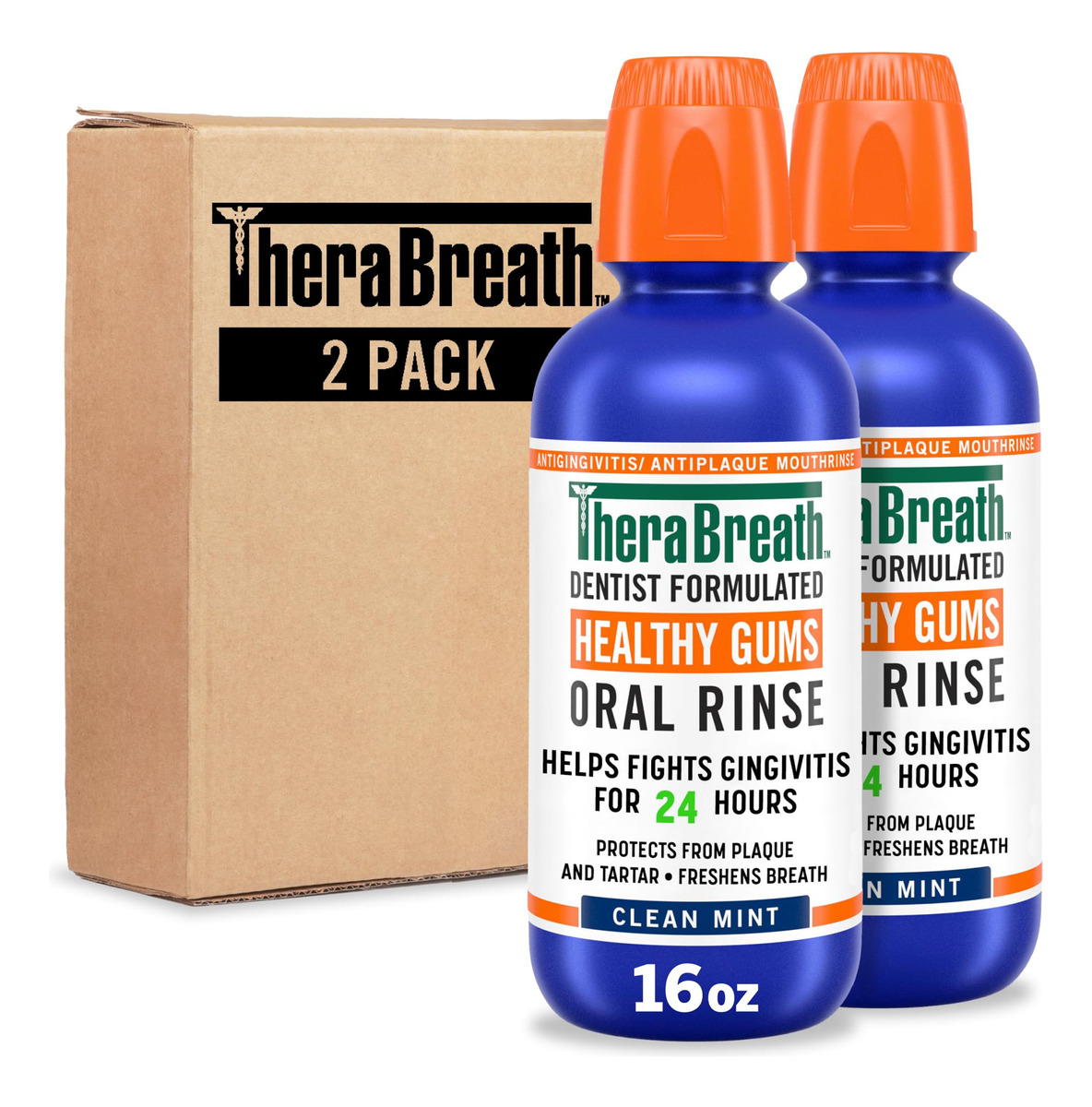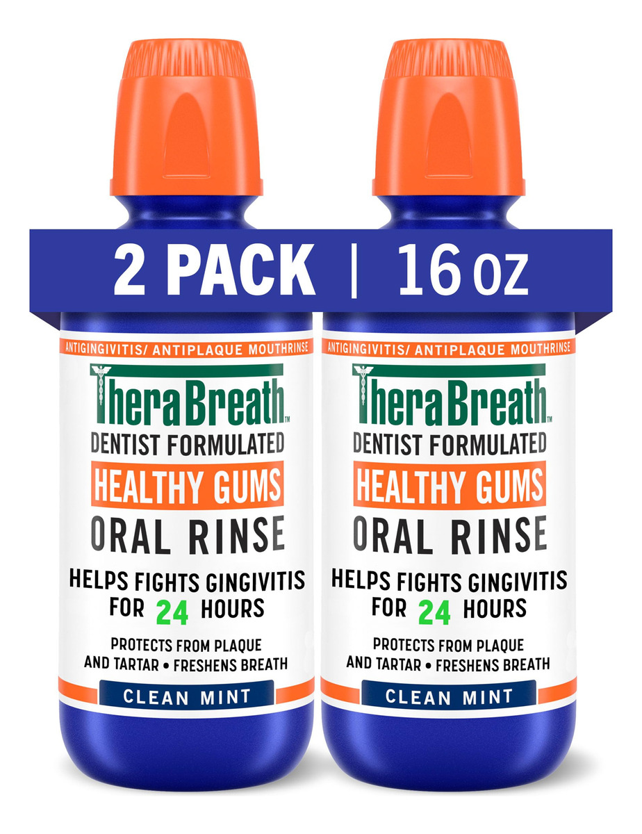 Enxaguante bucal TheraBreath Healthy Gums Clean Mint, antigengivite, formulado por dentistas, 16 ml de onça (pacote com 2) — ENXAGUANTE BUCAL PERIODONTAL: ajuda a combater a gengivite, uma forma precoce de doença gengival e sangramento gengival, por 24 horas quando usado conforme as instruções – FORMULADO POR DENTISTAS: Dr. Katz criou as fórmulas TheraBreath em 1993 para ajudar sua própria filha com o mau hálito – ÁLCOOL GRÁTIS: Fórmula não queimadora feita sem álcool que começa a funcionar instantaneamente – RESTAURE A CONFIANÇA: A TheraBreath acredita que você deve definir o sucesso da maneira que quiser. Existimos para motivá-lo a buscá-lo! – É UM ENXAGUANTE BUCAL MELHOR: experimente a marca #1 de enxaguantes bucais que mais cresce nos EUA (dados em arquivo)