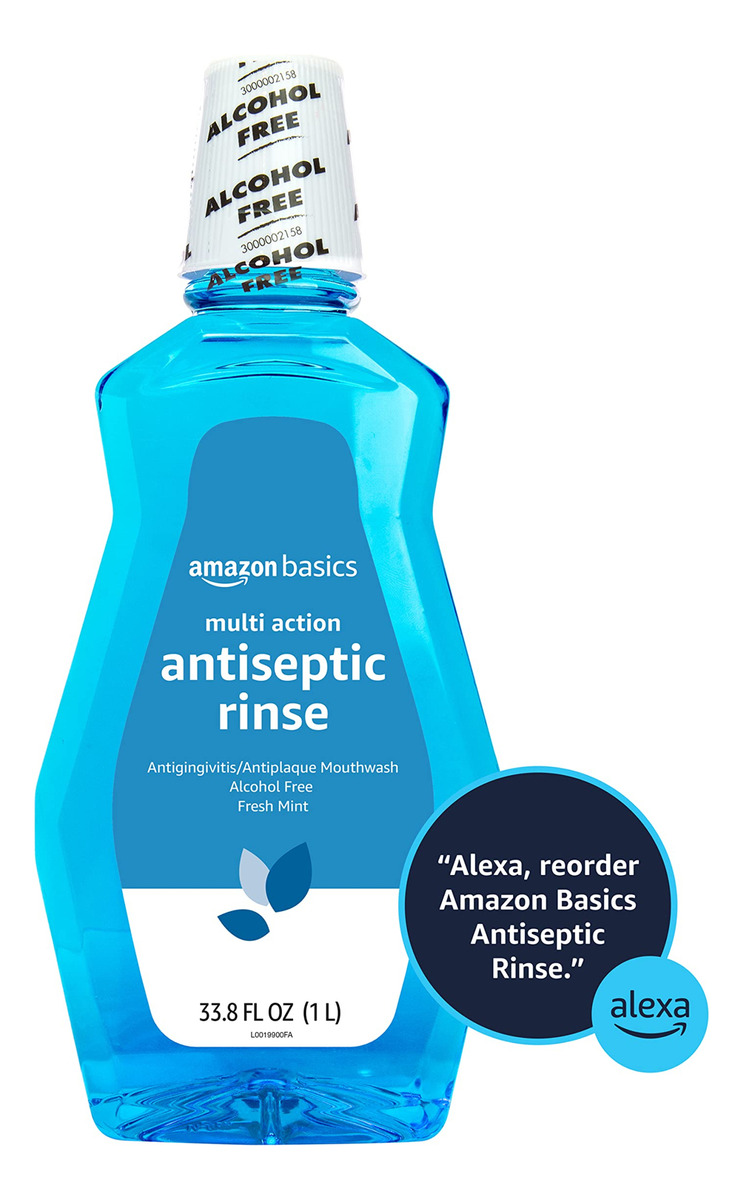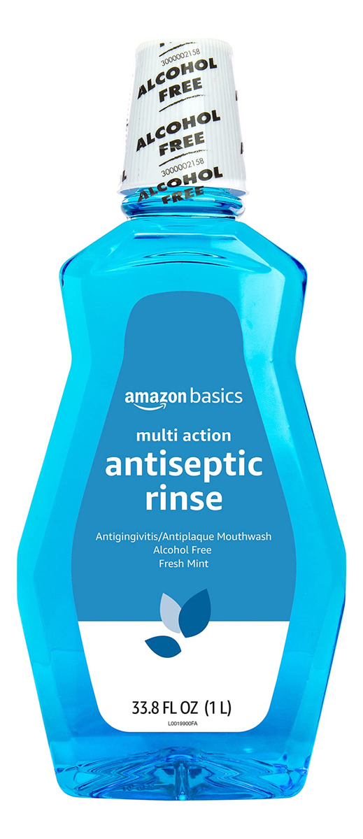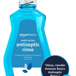 Enxágue antisséptico multiação Amazon Basics, sem álcool, hortelã fresca, 1 litro, 33,8 onças fluidas, 1 pacote (anteriormente Solimo) – Um frasco de 1 litro de enxaguante bucal antisséptico multiação – Ajuda a controlar a placa que causa gengivite – Sem álcool – Sabor de menta fresca – Use de manhã e à noite para uma melhor higiene bucal – Se você gosta do enxaguante bucal antisséptico Listerine, convidamos você a experimentar o Amazon Basics Enxágue antisséptico de ação múltipla — a compra por voz da Alexa está ativada: para fazer seu próximo pedido, basta dizer, Alexa, reordenar o Amazon Basics Antiseptic Rinse”
