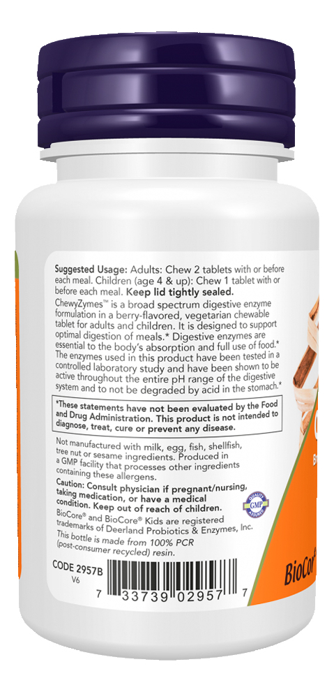 Enzimas ChewyZymes Now Foods 90 Chewables Importado