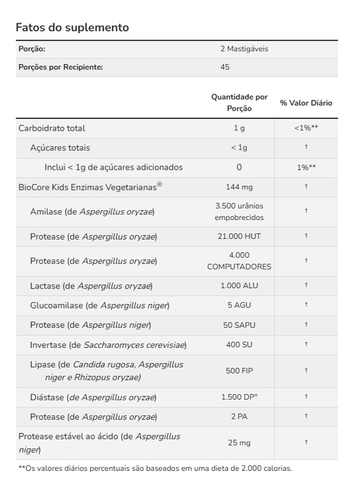 A composição inclui uma variedade de enzimas cuidadosamente escolhidas para oferecer suporte completo. Cada tablete mastigável é projetado para atender a necessidades específicas com eficiência. Validade longa