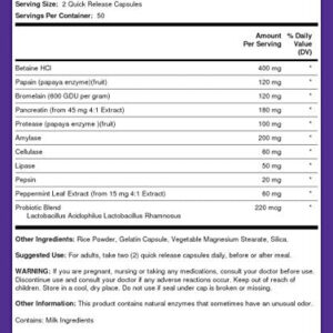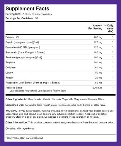 Combinamos um amplo espectro dos melhores ingredientes da natureza para criar nossa fórmula multienzimática Digest-IT definitiva com probióticos. Apresentando ingredientes populares como betaína HCL, papaína (mamão), pancreatina, amilase e muito mais, nossos suplementos multienzimáticos Digest-IT oferecem uma de nossas melhores fórmulas com as melhores enzimas digestivas. Além disso, nossas cápsulas vegetais incluem uma mistura probiótica com 4 bilhões de UFC por porção (no momento da fabricação), apresentando cepas benéficas como Lactobacillus salivarius para apoiar seu regime geral. Pegue agora um frasco para adicionar à sua rotina diária e aproveite os benefícios que homens e mulheres têm experimentado com este incrível suplemento!