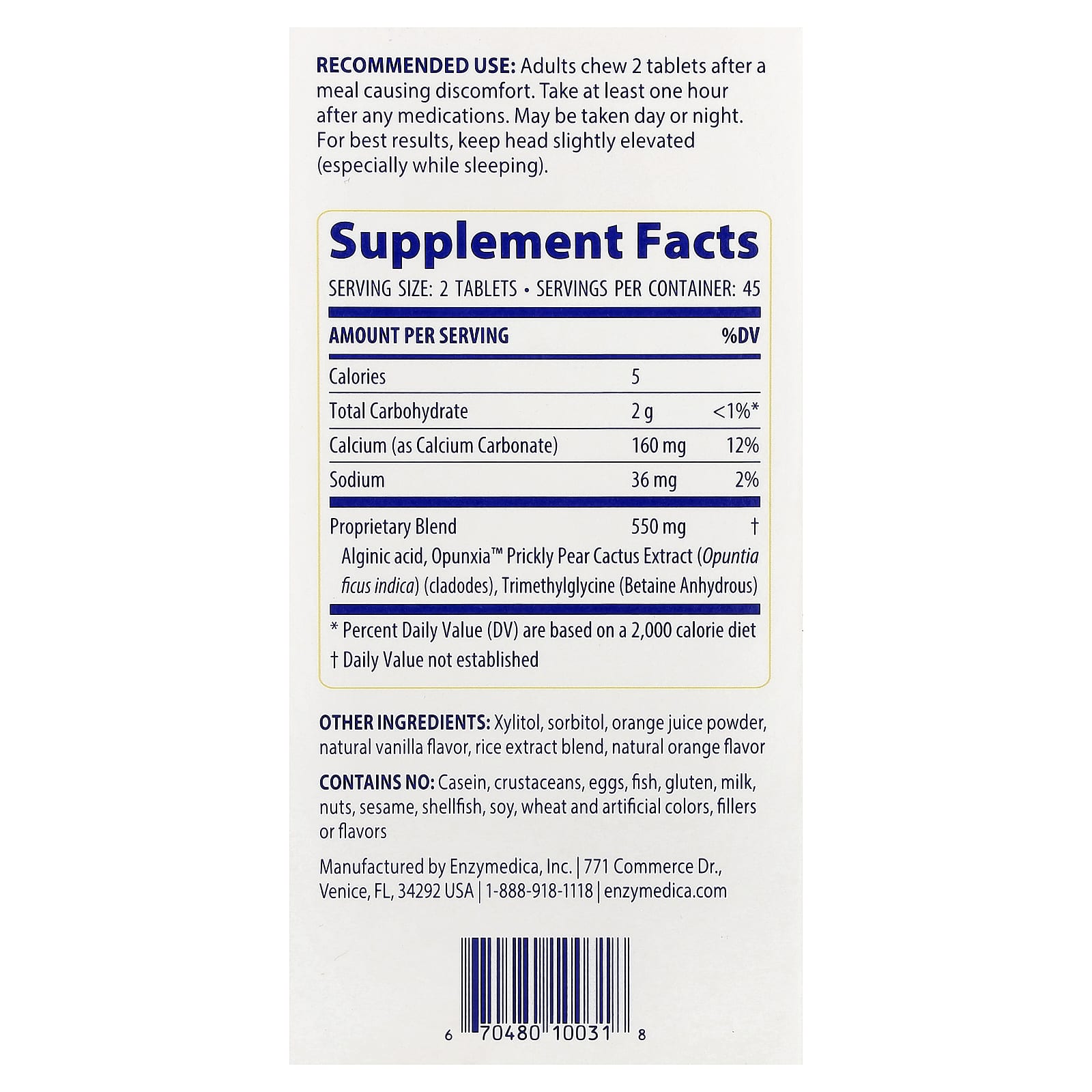 Outros ingredientes de ação rápida – Betaína e Carbonato de Cálcio – ajustam imediatamente os níveis de pH para limites confortáveis. Para proteção máxima, o extrato de Opúncia ajuda a reconstruir o trato digestivo.