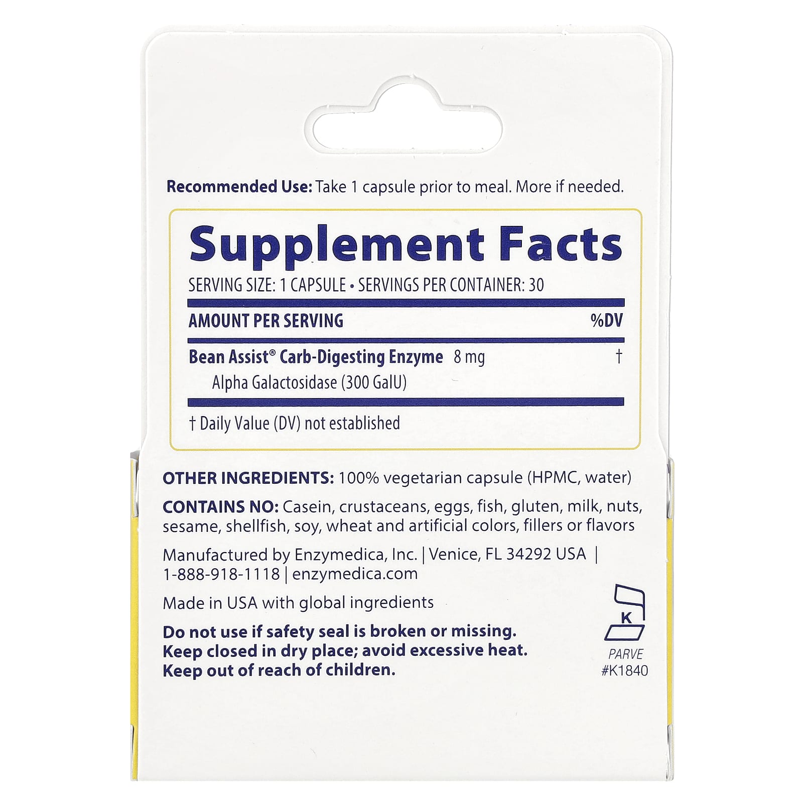 Enzymedica BeanAssist® 30 Cápsulas – Enzymedica Suplementos Saúde Intestinal Antiácidos e Alívio Digestivo Gas & Bloat Formulas Enzimas Digestivas.