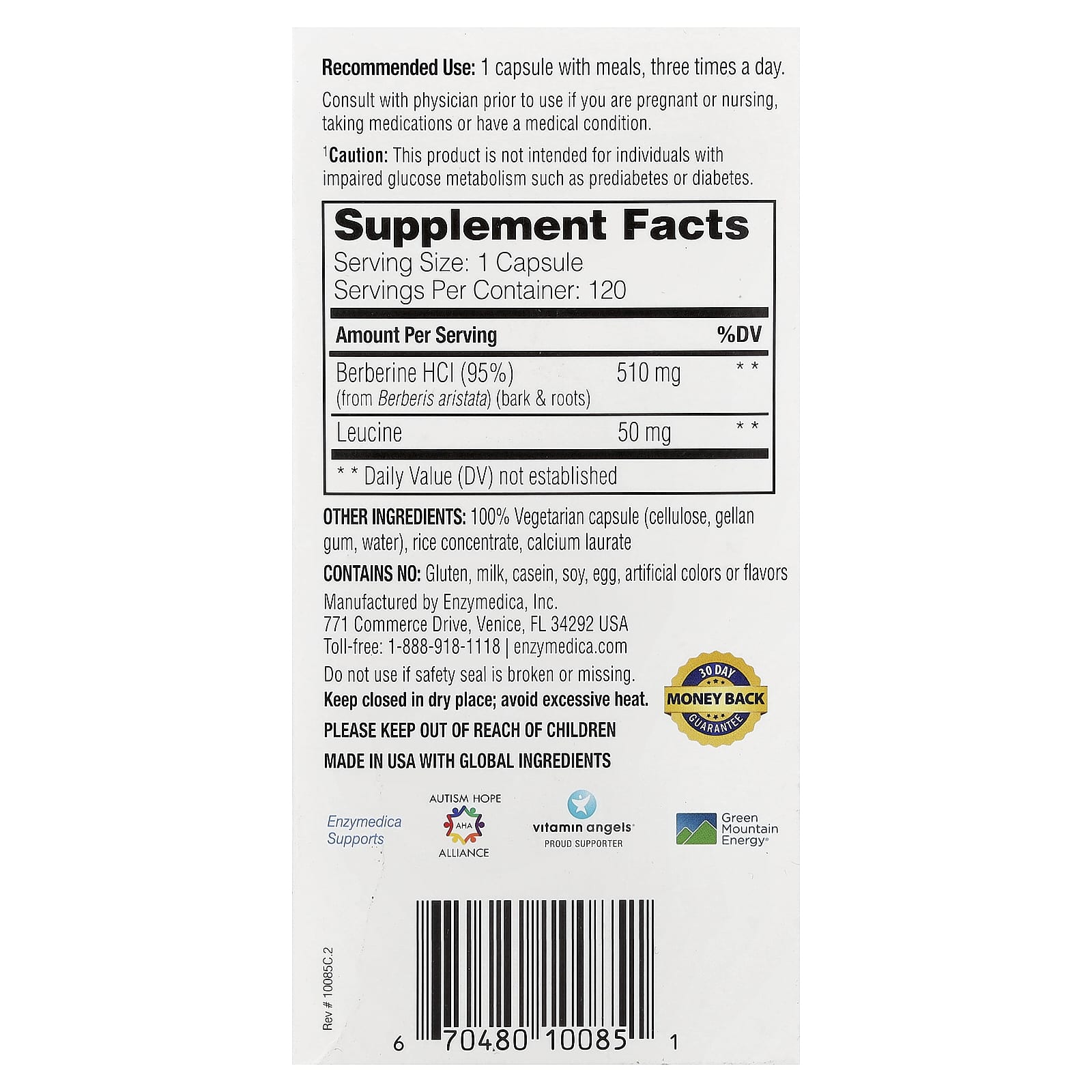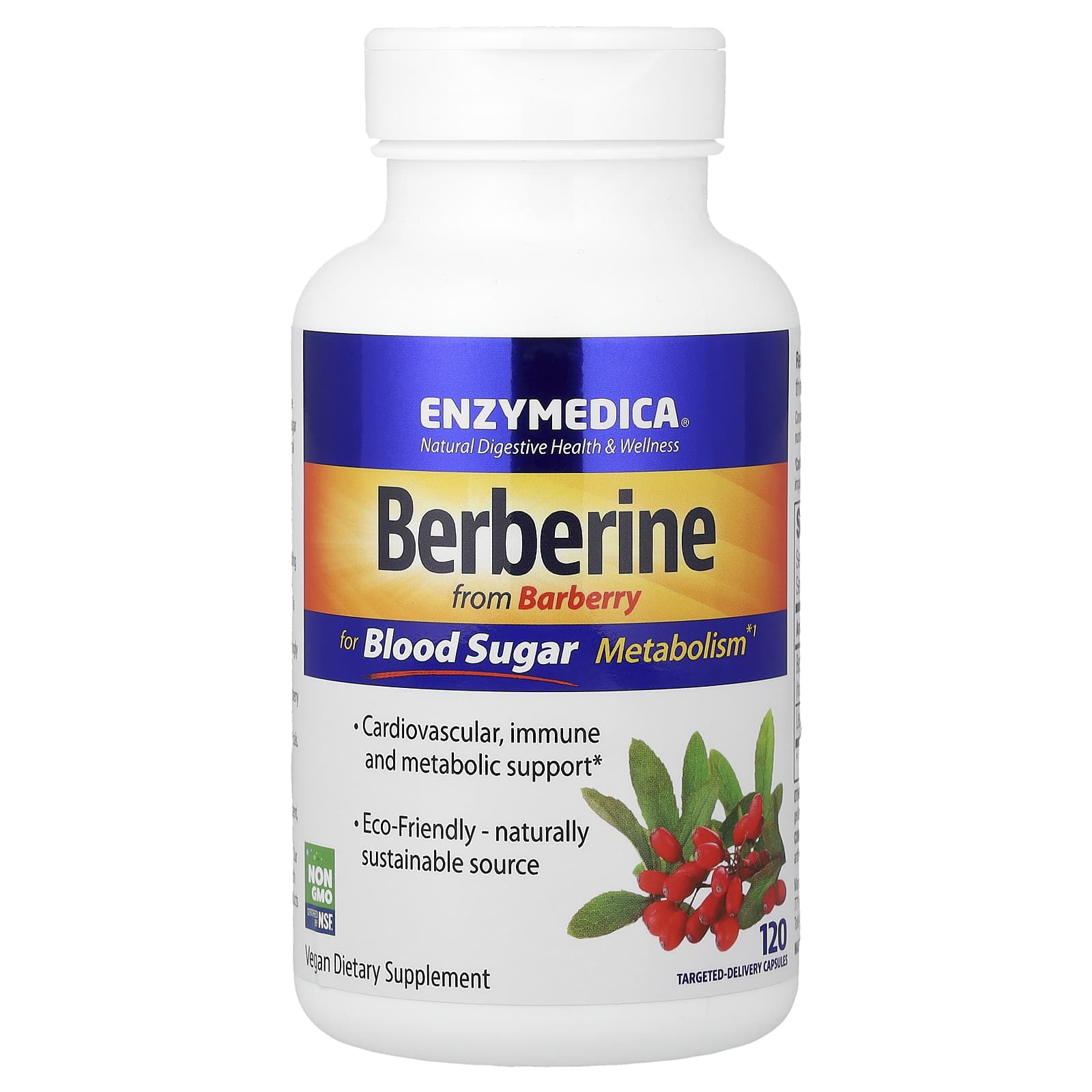 Enzymedica Berberina 120 Cápsulas de Entrega Direcionada – Enzymedica Suplementos Ervas Berberina.