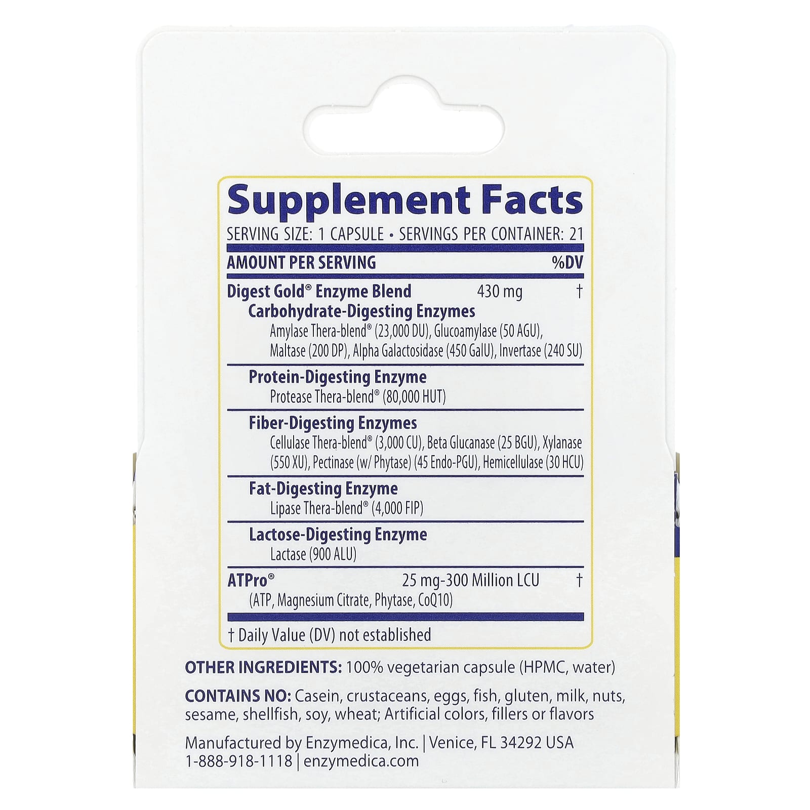 Enzymedica Digest Gold® com ATPro® Força Máxima 21 Cápsulas – Enzymedica Suplementos Saúde Intestinal Enzimas Digestivas.