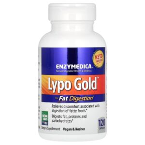 Enzymedica Lypo Gold Para Digestão de Gorduras 120 Cápsulas – Enzymedica Suplementos Saúde Intestinal Enzimas Digestivas.