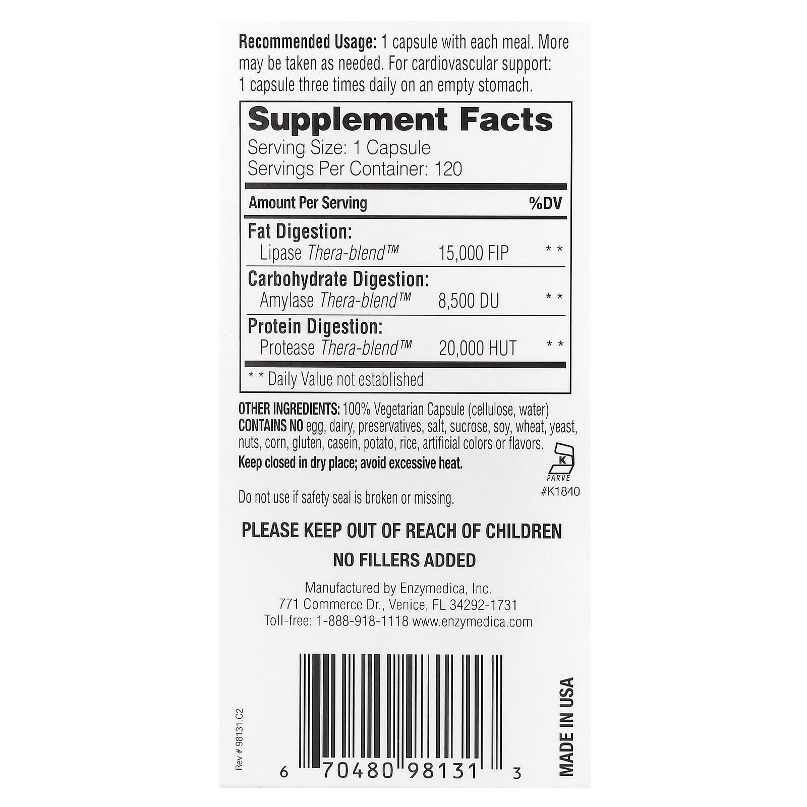 1 cápsula com cada refeição. É possível tomar mais cápsulas por dia, conforme necessário. Para suporte cardiovascular: 1 cápsula três vezes ao dia com o estômago vazio.