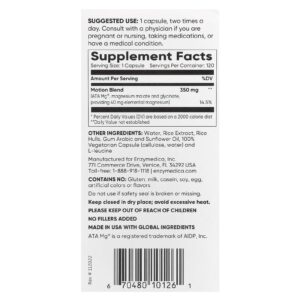 Enzymedica Magnesium Motion 120 Cápsulas (350 mg por Cápsula) – Enzymedica Suplementos Minerais Magnésio.