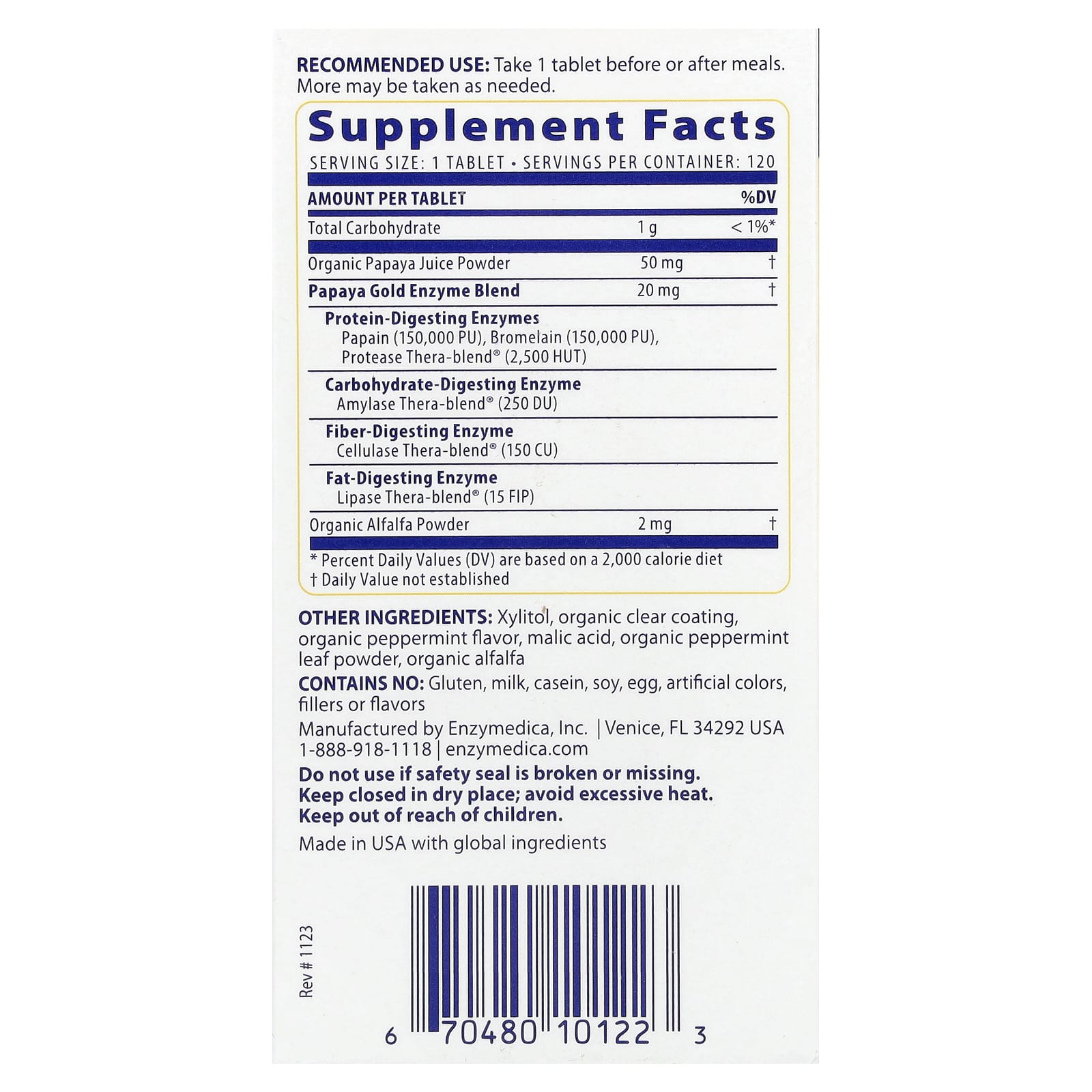 Enzymedica Mamão Gold Mamão e Menta 120 Comprimidos – Enzymedica Suplementos Saúde Intestinal Enzimas Digestivas Enzimas de Mamão.
