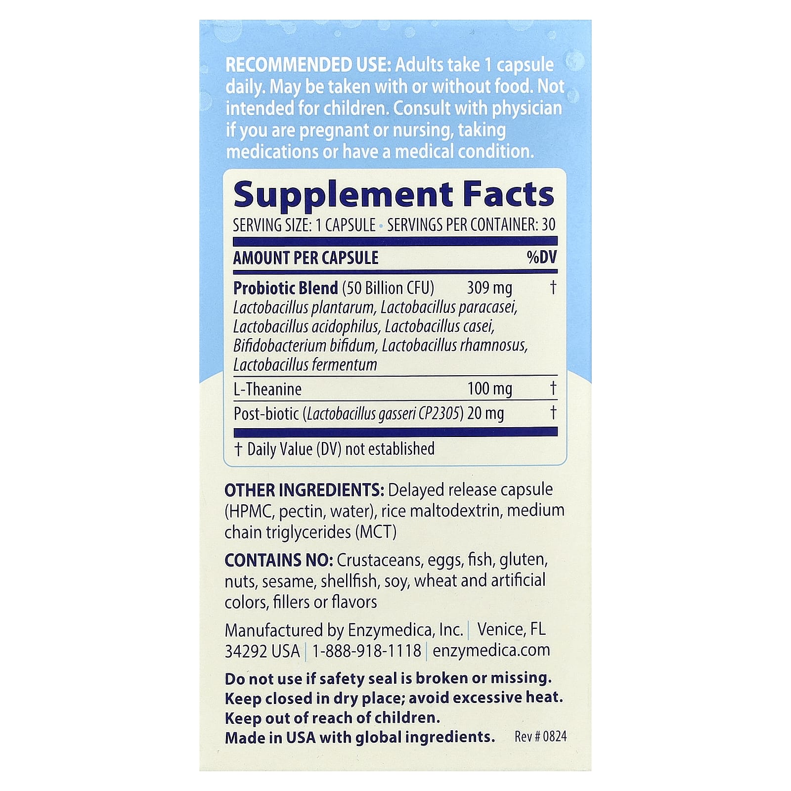 Enzymedica Probiótico SubCulture™ para o Mood 30 Cápsulas de Liberação Retardada – Enzymedica Suplementos Saúde Intestinal Probióticos Cérebro e Cognição Alívio do Estresse.