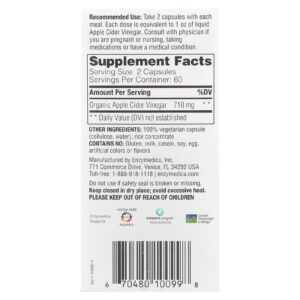 Enzymedica Vinagre de Sidra de Maçã com a Mãe Natureza 120 Cápsulas Vegetais (355 mg por Cápsula) – Enzymedica Suplementos Controle de peso Vinagre de maçã.