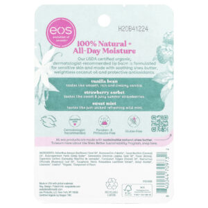 EOS Balm Labial 100% Natural e Orgânico Embalagem Variada 3 Balms Labiais 4 g (014 oz) Cada – EOS Cuidados Pessoais Lábios Bálsamo Labial.