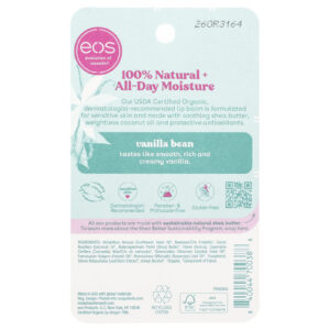 EOS Balm Labial 100% Natural e Orgânico Fava de Baunilha 7 g (025 oz) – EOS Cuidados Pessoais Lábios Bálsamo Labial.