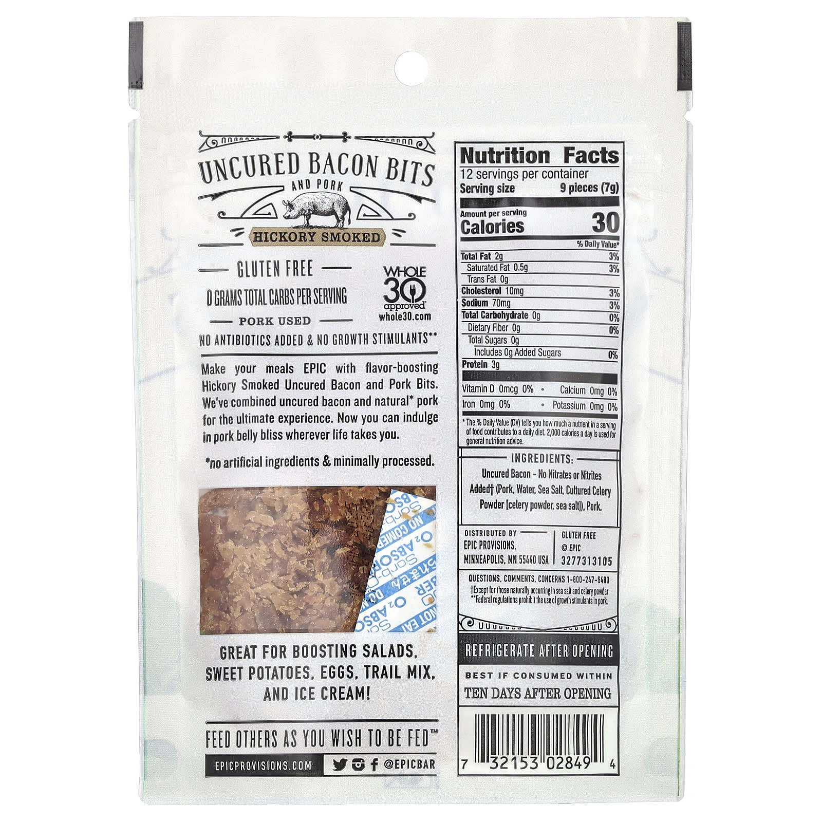 Epic Bar Pedaços de Bacon não Curados e Carne de Porco Nogueira Defumada 85 g (3 oz) – Epic Bar Alimentos Petiscos e lanches Petiscos de charque e carne.