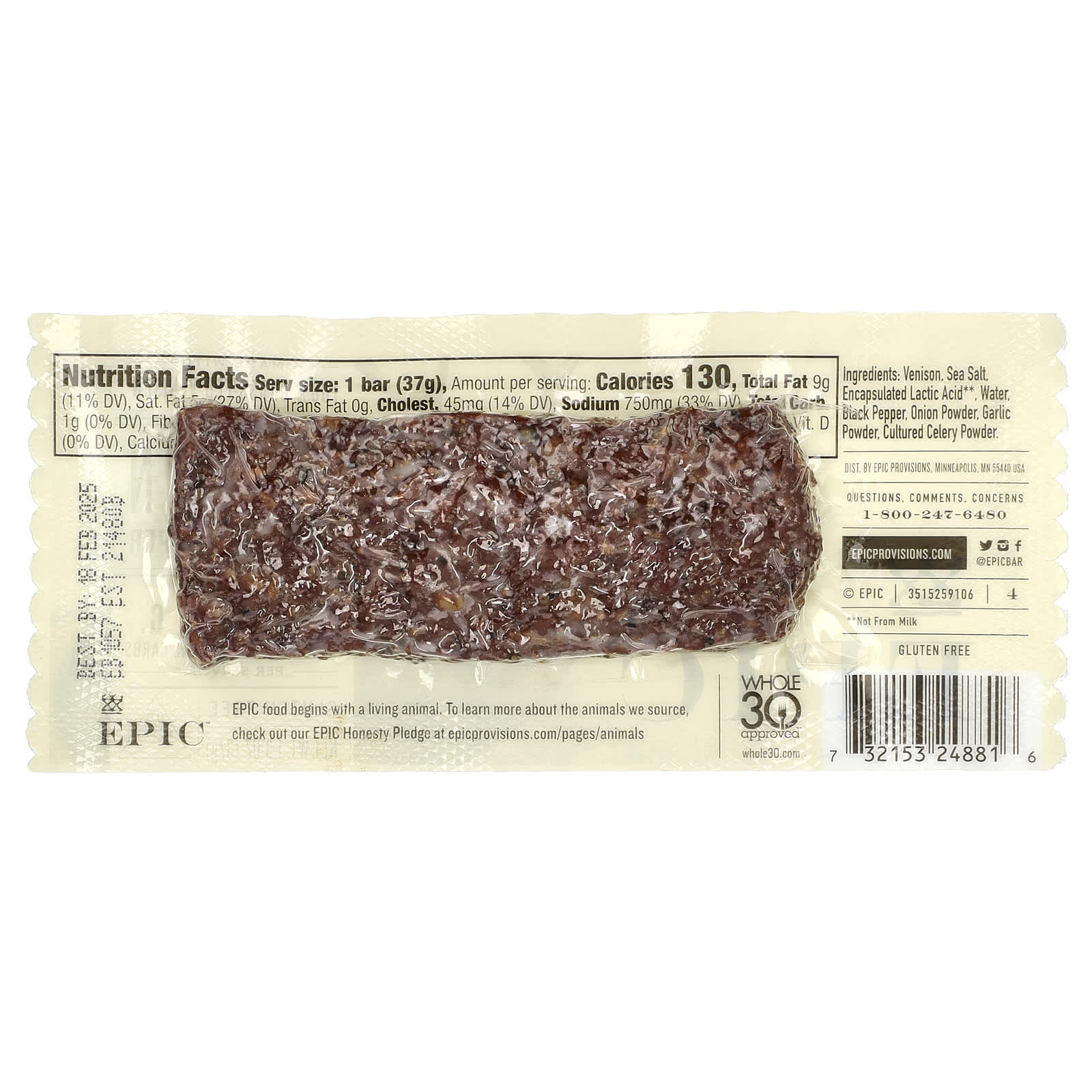 Epic Bar Venison Sea Salt + Pepper Bar 1.3 oz (37 g) – Epic Bar Alimentos Petiscos e lanches Petiscos de charque e carne.