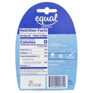Equal Adoçante de Caloria Zero Original 100 Comprimidos – Equal Alimentos Mel e adoçantes.
