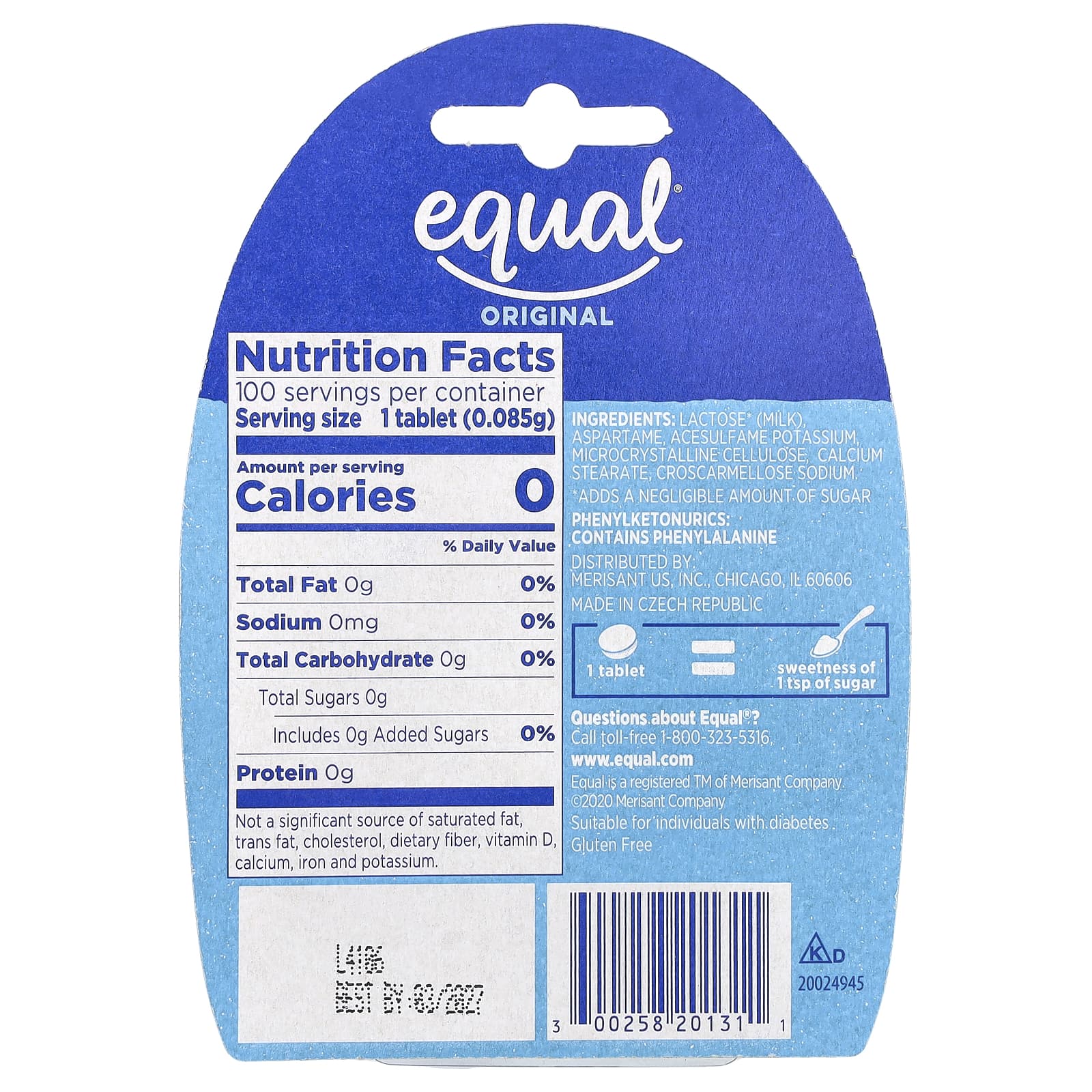 Equal Adoçante de Caloria Zero Original 100 Comprimidos