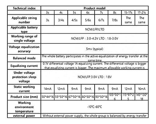 Baterias aplicáveis: Para baterias de íon de lítio, para baterias LiFePO4, para baterias LTO. Lista de pacotes: 1 x equalizador ativo da bateria 1 x Aviso sobre o cabo: 1.