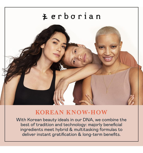 A Erborian garante produtos testados em pessoas reais, livres de crueldade e livres de ingredientes nocivos, como sulfatos, parabenos, formaldeído, ftalatos ou outros agentes nocivos. Apresentação de 50 mL.