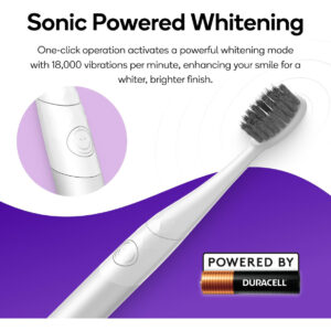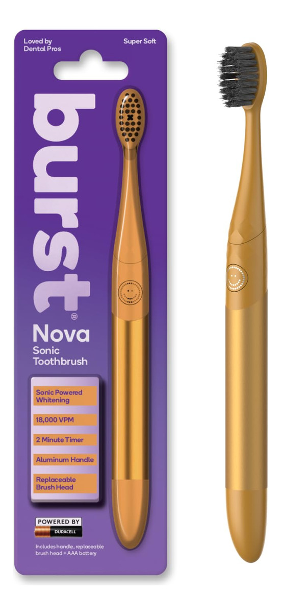 Escova de dentes Nova Sonic – SONIC POWERED WHITENING: Sua escova de dentes manual está um pouco… básica? A escova de dentes BURST Nova Sonic é o seu caminho acessível para melhorar a saúde bucal. Sua operação com um clique ativa um poderoso modo de clareamento com 18.000 vibrações por minuto, aprimorando seu sorriso para obter um acabamento mais branco e brilhante. – Trabalhe de forma mais inteligente, não mais difícil: escovar com facilidade! A vibração orienta você pelos 2 minutos recomendados pelo dentista, eliminando as suposições sobre dentes limpos. Alimentado por uma bateria AAA Duracell confiável, sem fios, sem problemas, apenas um sorriso mais saudável. – TOQUE MACIO, GRANDE IMPACTO: experimente uma limpeza suave que protege suas gengivas. As cerdas macias são gentis com seu sorriso, reduzindo o risco de abrasão e irritação. — Feitas para durar com uma alça de alumínio: invista em seu sorriso com qualidade duradoura. Uma alça de alumínio e cerdas duráveis resistem ao uso diário, enquanto a cabeça substituível segue as recomendações da ADA para troca de escovas ecologicamente correta. Serão necessárias apenas duas cabeças a cada 12 semanas. – DESENVOLVIDO POR PROFISSIONAIS DA ODONTOLOGIA: elimine a placa bacteriana com uma escova apoiada por uma comunidade de mais de 40.000 profissionais de odontologia. Os pincéis elétricos oferecem uma limpeza superior em comparação com os pincéis manuais, proporcionando um sorriso mais limpo e saudável.