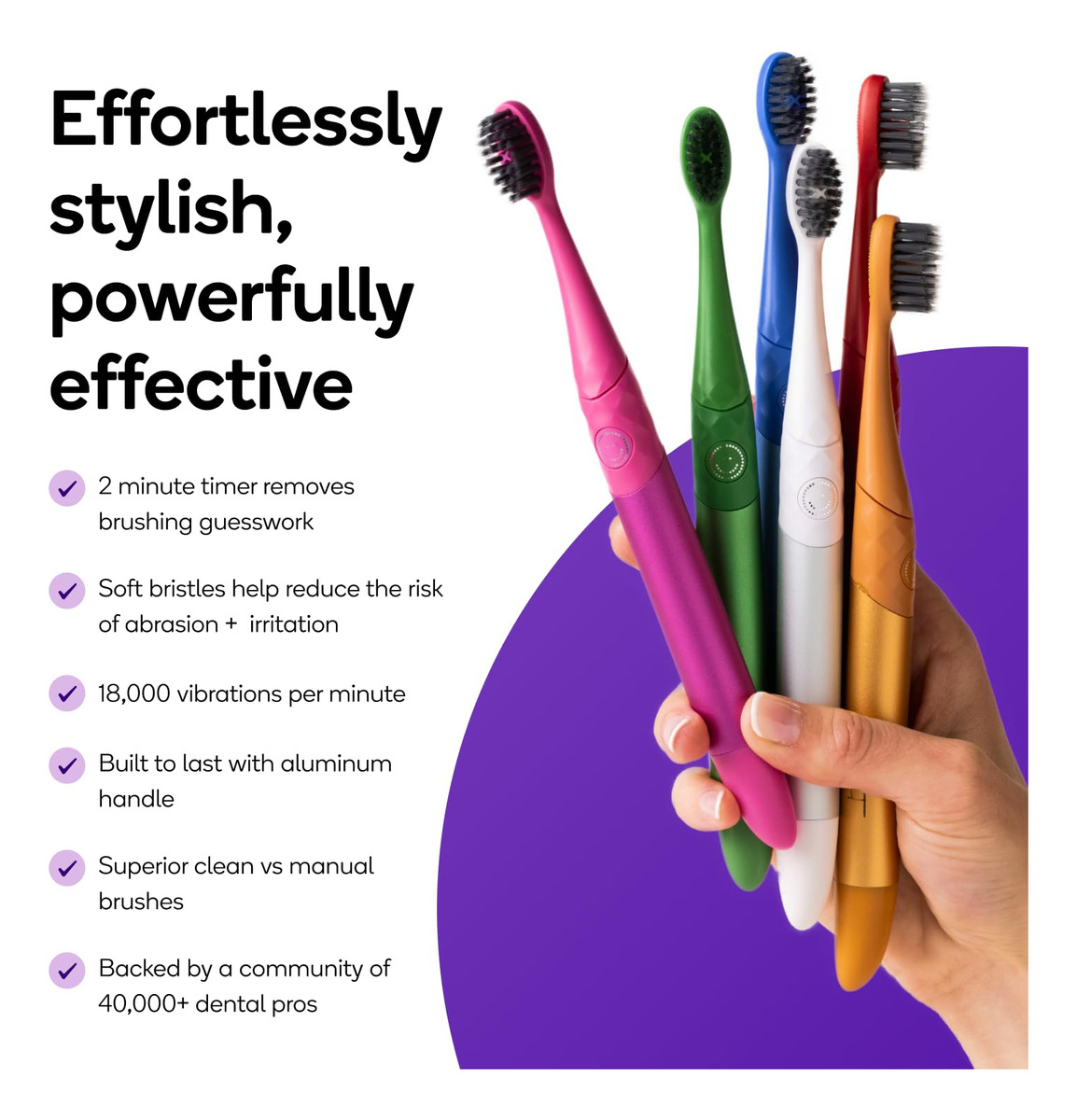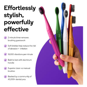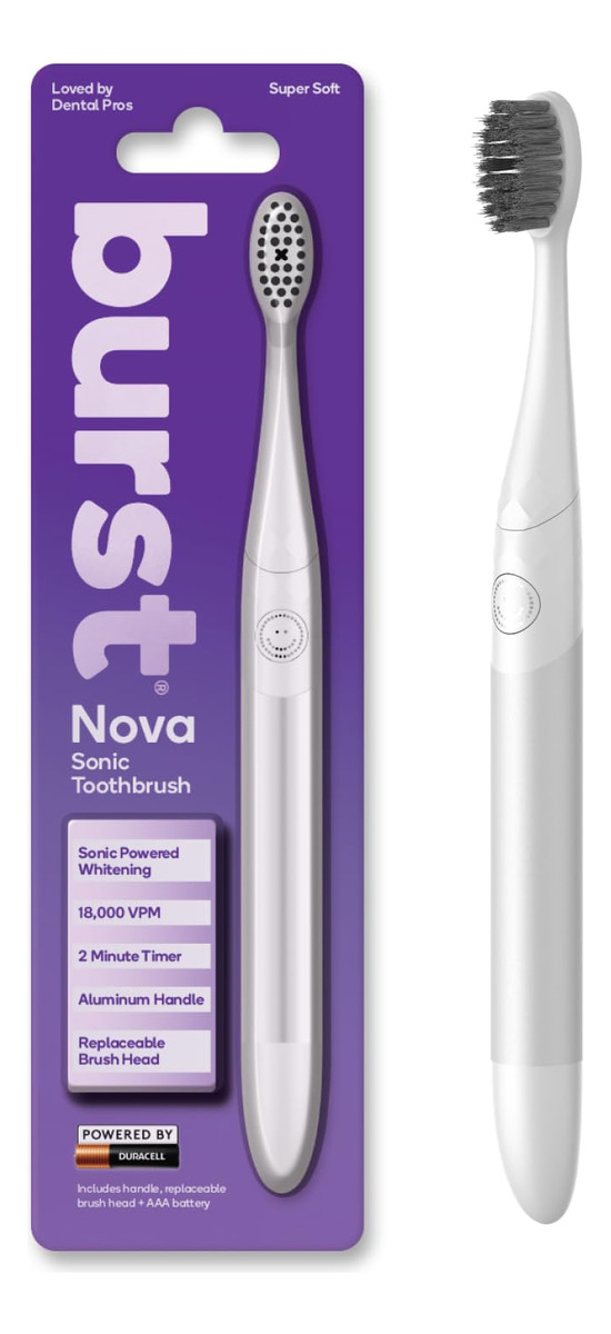 Escova de dentes Nova Sonic – SONIC POWERED WHITENING: Sua escova de dentes manual está um pouco… básica? A escova de dentes BURST Nova Sonic é o seu caminho acessível para melhorar a saúde bucal. Sua operação com um clique ativa um poderoso modo de clareamento com 18.000 vibrações por minuto, aprimorando seu sorriso para obter um acabamento mais branco e brilhante. – Trabalhe de forma mais inteligente, não mais difícil: escovar com facilidade! A vibração orienta você pelos 2 minutos recomendados pelo dentista, eliminando as suposições sobre dentes limpos. Alimentado por uma bateria AAA Duracell confiável, sem fios, sem problemas, apenas um sorriso mais saudável. – TOQUE MACIO, GRANDE IMPACTO: experimente uma limpeza suave que protege suas gengivas. As cerdas macias são gentis com seu sorriso, reduzindo o risco de abrasão e irritação. — Feitas para durar com uma alça de alumínio: invista em seu sorriso com qualidade duradoura. Uma alça de alumínio e cerdas duráveis resistem ao uso diário, enquanto a cabeça substituível segue as recomendações da ADA para troca de escovas ecologicamente correta. Serão necessárias apenas duas cabeças a cada 12 semanas. – DESENVOLVIDO POR PROFISSIONAIS DA ODONTOLOGIA: elimine a placa bacteriana com uma escova apoiada por uma comunidade de mais de 40.000 profissionais de odontologia. Os pincéis elétricos oferecem uma limpeza superior em comparação com os pincéis manuais, proporcionando um sorriso mais limpo e saudável.