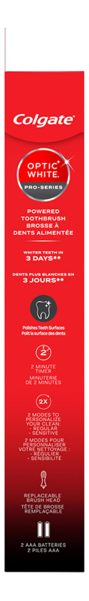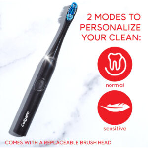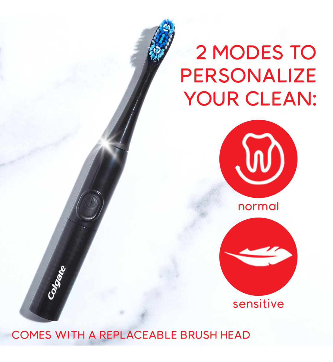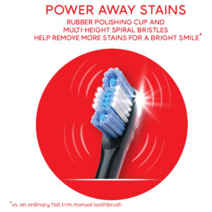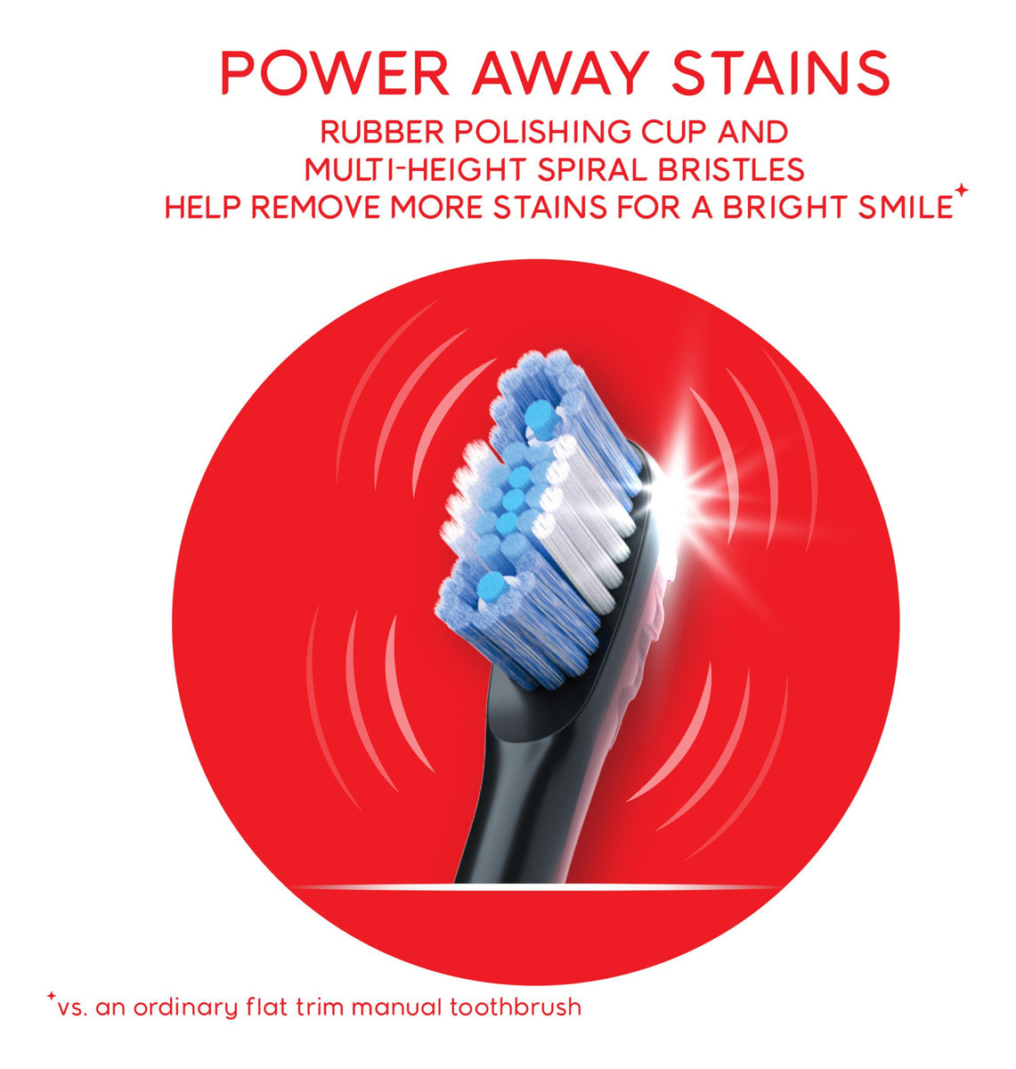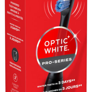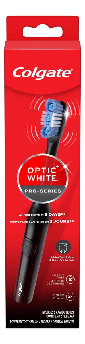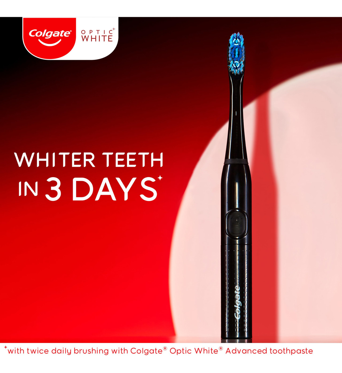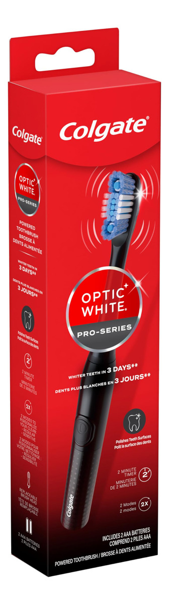 Escova de dentes preta com bateria Colgate 360 Optic White Pro Series – Uma escova de dentes elétrica Colgate Optic White Pro Series, preta – Escova de dentes sônica alimentada por bateria – O copo de polimento de borracha remove mais manchas para um sorriso brilhante* (*versus uma escova de dentes comum) – Cabeça de escova substituível – Cronômetro de 2 minutos para ajudar você a limpar melhor