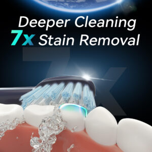 A escova de dentes elétrica sônica 7am2m adota a avançada tecnologia sônica, produz 48.000 pinceladas por círculo para uma poderosa ação de limpeza dinâmica. O efeito de limpeza é mais óbvio do que as escovas de dentes manuais e proporciona uma escovação mais suave e protege o esmalte dos dentes do que uma escova rotativa. Com o tempo, as cerdas azuis nas duas extremidades gradualmente desaparecerão para o branco, notificando você para prestar atenção à substituição da cabeça da escova. Apenas experimente! Uma semana de uso pode ajudar a reduzir a placa dentária e a obter um ambiente bucal saudável. Duas semanas de uso podem melhorar completamente sua saúde bucal e ajudá-lo a sorrir com confiança:) – 5 modos de alto desempenho e adequada para pessoas – A escova de dentes elétrica para adultos e crianças suporta 5 modos com base em suas necessidades específicas Limpa: adequada para crianças Branca: universal para todas as populações Polonês: adequada para adultos sensíveis: limpa após as refeições Mais suave: limpeza suave noturna – 8 cabeças de substituição por mais de 24 meses de uso O ciclo de uso recomendado da cabeça da escova é de três meses, e não substituir a cabeça da escova por muito tempo afetará o efeito de limpeza. Temos muitas escovas de reposição para resolver as necessidades de substituição de longo prazo.