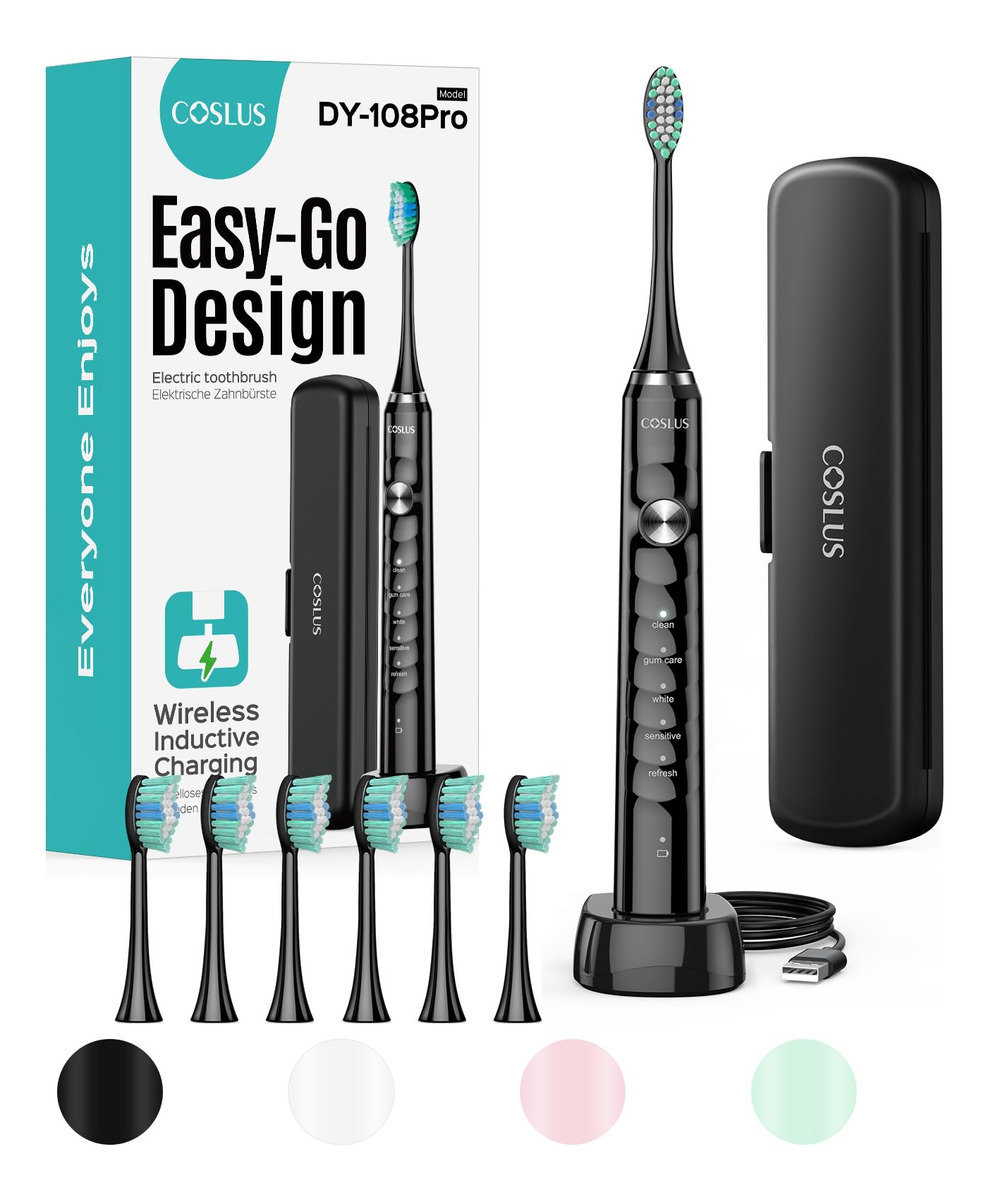 O que vem no pacote 1 escova de dentes elétrica sônica para adultos e adolescentes1 estojo portátil de armazenamento de viagem; 1 base de carregamento sem fio; 6 escovas; 1 cabo de carregamento USB (notas: adaptador não incluído) Cores disponíveis: rosa; preto; verde; branco Experimente a solução definitiva para limpeza profunda dos dentes, melhoria da saúde gengival, clareamento dos dentes e hálito fresco com a escova de dentes sônica elétrica COSLUS para adultos e adolescentes: com 47.000 VPM sônica avançada Com tecnologia, esta escova de dentes sônica elétrica de viagem remove até 99,99% das manchas e 10 vezes mais placa bacteriana em áreas de difícil acesso. A base de carregamento sem fio atualizada e a caixa de armazenamento de viagem tornam esta escova de dentes elétrica sônica para adultos e adolescentes conveniente e fácil de usar em qualquer lugar. O design de escova em forma de W dessas escovas de dente sônicas elétricas de viagem com cerdas de qualidade alimentar, seguras e duráveis garante uma limpeza suave e eficaz. Equipado com um motor maglev atualizado e impermeabilização superior, é feito para durar. Com 5 modos personalizados e um sistema de controle de temporizador de 2 minutos integrado, a escova de dentes elétrica sônica de viagem é adequada para adultos e adolescentes. Além disso, com 6 cabeças de escova incluídas, você terá tudo o que precisa para 18 meses de uso. Invista na sua saúde bucal, experimente a escova de dentes elétrica sônica COSLUS! – Tecnologia avançada de 47.000 VPM, 10 de limpeza profunda: a escova de dentes elétrica COSLUS para adultos possui tecnologia avançada de 47.000 vpm, aprovada profissionalmente por uma equipe odontológica americana. Ele remove 10 vezes mais placa bacteriana de áreas de difícil acesso do que outras escovas de dente para uma limpeza profunda. Escova de dentes elétrica de viagem COSLUS para adultos que clareará dentes, hálito fresco e gengivas saudáveis em 1 semana – Com base de carregamento sem fio e estojo de viagem Ugrade, mais fácil de carregar e viajar: a escova de dentes elétrica COSLUS para adultos vem com uma base de carregamento sem fio atualizada, que torna o carregamento mais conveniente e rápido. Esta escova de dentes elétrica de viagem pode durar 70 dias após 1 carregamento, o que é o dobro das outras. Ela também vem com uma caixa de armazenamento de viagem, tornando-a a escolha ideal para sua viagem ou escritório – escova de design em forma de “W” para limpeza profunda: a escova desta escova de dentes elétrica de viagem é feita de cerdas de qualidade alimentar, seguras e duráveis com dureza moderada a macia. O design em forma de W está alinhado com o formato dos dentes, que podem limpar profundamente as aberturas dos dentes; o design arredondado da extremidade é suave e seguro para a gengiva. A escova de dentes elétrica para adultos vem com 6 cabeças de escova, com duração de 18 meses. Com cerdas lembretes azuis que desbotam, você sabe quando substituir a cabeça da escova – Superdurabilidade de mais de 1000 horas e impermeabilidade IPX7: nossa escova de dentes elétrica para adultos é equipada com motor maglev atualizado, que fornece uma frequência de vibração mais alta de 47.000 vpm e uma vida útil de mais de 1000 horas, superando produtos similares. Nossa escova de dentes elétrica de viagem possui impermeabilização superior, que pode ser facilmente limpa e usada com segurança no chuveiro – Adequada para 99% de diferentes faixas etárias: esta escova de dentes elétrica de viagem é adequada para adultos. Avaliada profissionalmente por uma equipe odontológica americana, a escova de dentes elétrica COSLUS para adultos oferece 5 modos para atender às diferentes necessidades de 99% de faixas etárias diferentes e atender a todas as suas necessidades de limpeza bucal. O temporizador inteligente de 2 minutos integrado pulsa a cada 30 segundos para lembrá-lo, tornando a limpeza dos dentes mais eficiente e abrangente. Nota: o adaptador não está incluído para evitar o desperdício de recursos, mas você pode carregá-lo usando qualquer adaptador de 5V disponível. Se necessário, pegue na COSLUS.