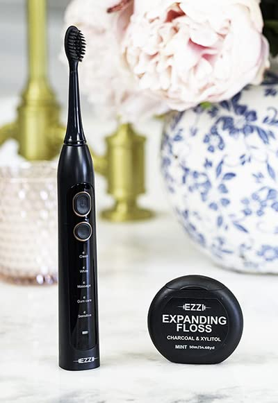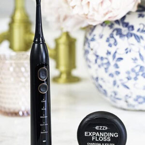 MATERIAL DA CERDA: cerdas de bambu com infusão de carvão RIGIDEZ DA CERDA: cerdas ultramacias CONFIGURAÇÃO DA CERDA: alternando cerdas longas cônicas e curtas BATERIA: 1500mAh ~ 60 dias de escovação CLASSIFICAÇÃO À PROVA D'ÁGUA: IPX7 ALÇA: Baixo zumbido VIBRAÇÕES: 84.000 movimentos por minuto (42.000 vibrações por minuto) TEMPORIZADOR: temporizador quadrante de 2 minutos MODOS: 5 modos de limpeza CONTEÚDO DA EMBALAGEM: 2 cabeças de escova 1 alça de escova de dentes com bateria recarregável 1 suporte de carregamento com um conector USB padrão (USB-A) 1 panfleto de instruções – COMBATE DOENÇAS E CÁRIES GENGIVAIS: O longo cônico as cerdas atingem abaixo do nível da gengiva e são profundas entre os dentes, onde geralmente começam as cáries e as doenças gengivais. A maioria das cerdas comuns são muito grossas ou curtas para entrar no espaço apertado entre dentes e gengivas. – REMOVE MANCHAS: As 42.000 vibrações sônicas por minuto (84.000 movimentos) são fortes o suficiente para remover manchas, auxiliadas pelas cerdas infundidas com carvão. Isso é 12.000 vpm a mais do que outras marcas comuns. – RECESSÃO GENGIVAL E DENTES SENSÍVEIS: Ao contrário do que parece, as cerdas de bambu com infusão de carvão são incrivelmente macias e suaves para ajudar a evitar dentes sensíveis, recessão gengival e desgaste dentário. Outras escovas de dentes com cerdas duras geralmente contribuem para esses problemas. – APARELHOS: As cerdas mais curtas da escova de dentes EZZI são mais longas do que as cerdas normais de outras marcas comuns. As cerdas também são muito flexíveis. Isso permite que a escova de dentes limpe profundamente e suficientemente ao redor do aparelho ortodôntico. – VIAGEM: A bateria de 1500mAh fornece cerca de 60 dias de escovação com uma carga, o que é ideal para viajantes de longa duração.