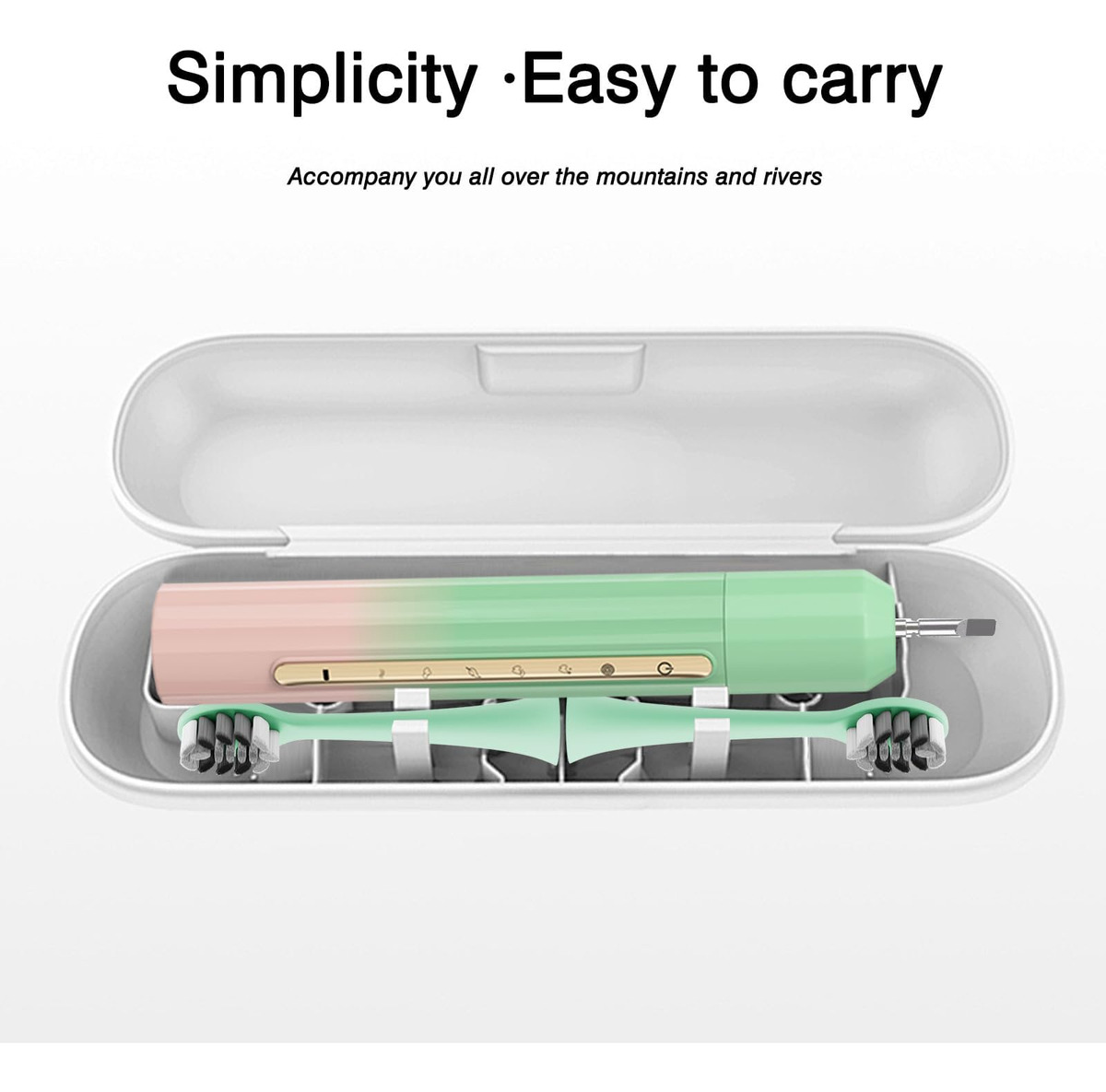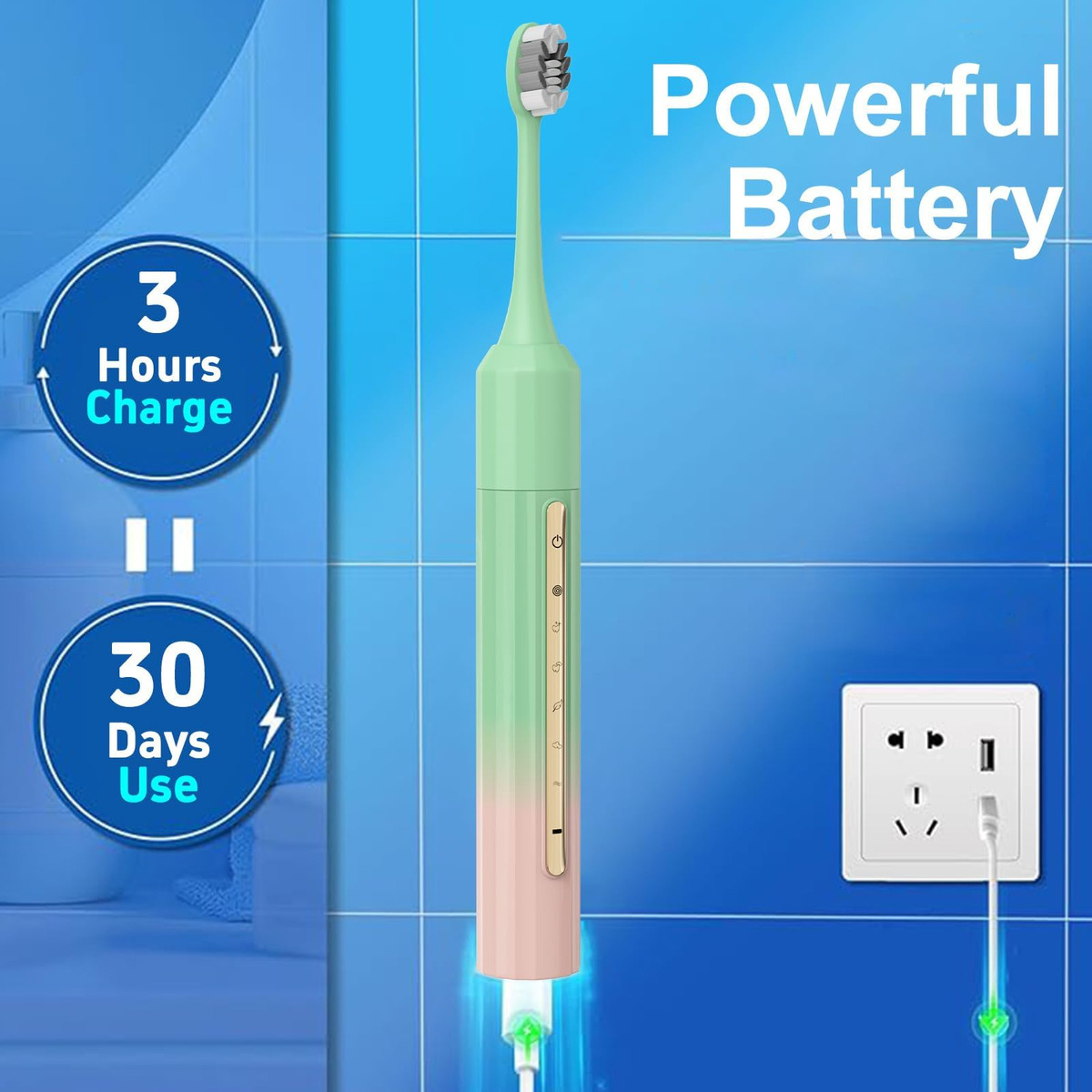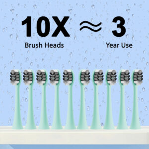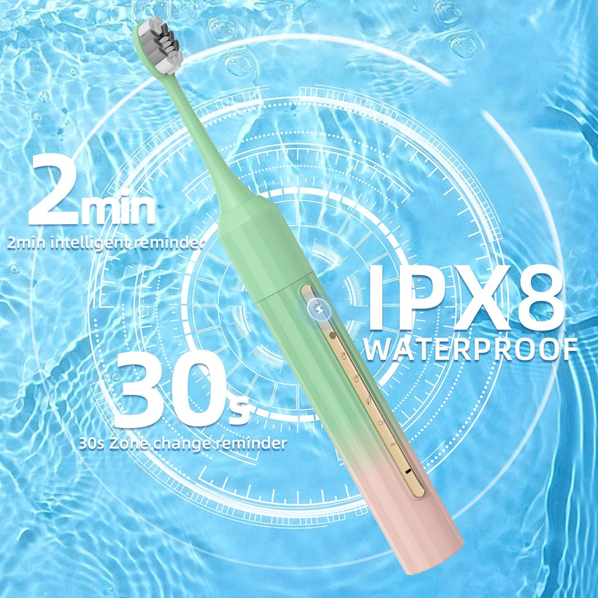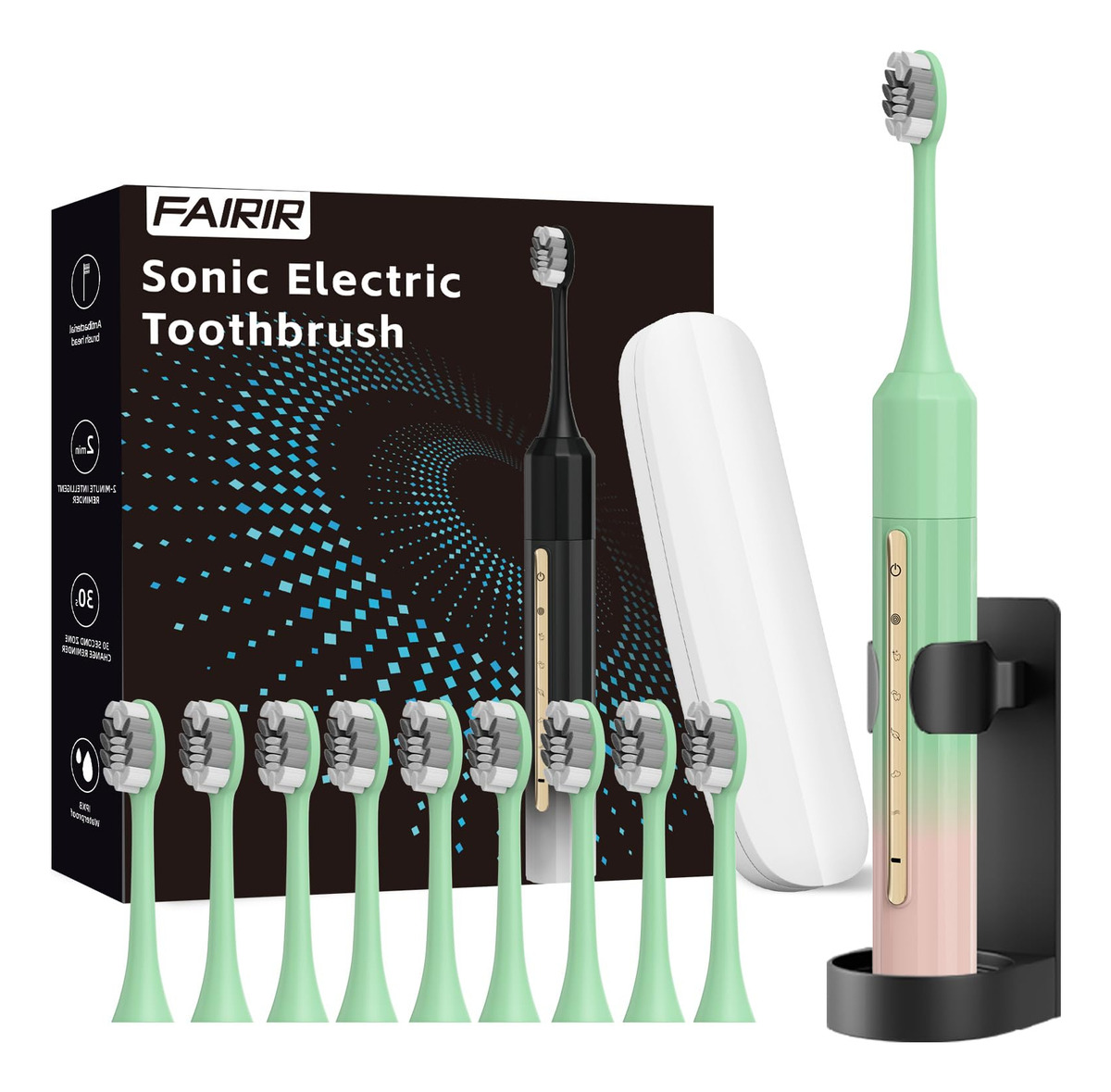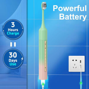 Escova de dentes elétrica Fairir Sonic 42000 vibrations com 10 cabeças de escova, adequada para adultos, 30 dias de uso com uma única carga, temporizador inteligente de 2 minutos integrado de 5 modos, classificação IPX8, resistente à água, rosa esverdeado — Capacidade da bateria Com uma impressionante duração de bateria de 34 dias com uma única carga, este estojo de escova de dentes de viagem é essencial para suas viagens – esteja você viajando, em uma viagem de negócios, indo para a escola, acampar ou usá-lo na vida familiar diária. Você pode viajar sem preocupações sem precisar embalar carregadores ou se preocupar com a falta de energia. – Longevidade e conveniência excepcionais. Fornecendo 30 meses de uso com 10 cabeças de escova de reposição (cada uma com duração de 3 meses), este conjunto abrangente de acessórios também inclui 1 estojo de viagem, 1 cabo de carregamento USB, 1 manual do usuário e 5 suportes para escovas de dentes. Isso garante um valor e conveniência excepcionais a longo prazo, mantendo os usuários bem equipados para uso prolongado sem a necessidade de comprar novas cabeças de escova com frequência. – Remoção avançada de placa. Alimentada por um eixo de metal, a escova de dentes elétrica utiliza a mais recente tecnologia de vibração sônica para oferecer um desempenho de limpeza excepcional. Atingindo até 42.004 vibrações por minuto, esse movimento sônico de alta frequência está muito além das capacidades das escovas de dente elétricas tradicionais. As vibrações sônicas acionadas por metal desalojam efetivamente a placa bacteriana e os restos de comida, proporcionando uma limpeza profunda e completa. – Design versátil de 5 modos Esta escova de dentes elétrica oferece aos usuários uma experiência de limpeza ainda mais versátil e personalizável. Os 9 modos principais permitem que os usuários atendam com precisão aos requisitos específicos de saúde bucal, seja limpeza completa, clareamento, cuidado gengival ou escovação suave com foco na sensibilidade. Esse nível de personalização aprimora ainda mais a capacidade do produto de fornecer resultados de limpeza excepcionais, adaptados às necessidades individuais do usuário. – CRONÔMETRO DE NOTIFICAÇÃO VIBRATÓRIA INTELIGENTE integrado, intervalo de 30 segundos que lembra você de passar para o próximo quadrante da boca e totalmente em 2 minutos (8 quadrantes), o que é altamente recomendado por dentistas profissionais, como forma correta de escovação.