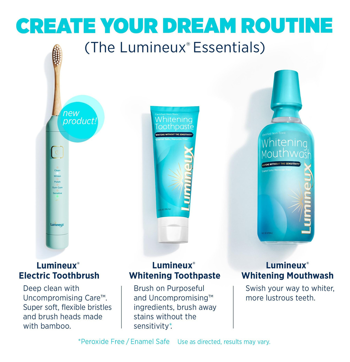 Limpa profundamente com cuidado intransigente: a escova de dentes elétrica Lumineux foi projetada e criada para ajudar a proteger seu esmalte e, ao mesmo tempo, fornecer o tipo de limpeza que você espera de uma escova de dentes elétrica. O segredo da nossa inovação está nas cerdas que usamos. Essas cerdas supermacias são feitas com materiais renováveis que oferecem uma limpeza profunda com cuidado intransigente. – Limpeza suave e eficaz: projetada com cerdas supermacias feitas de materiais renováveis, a escova de dentes elétrica Lumineux fornece uma limpeza profunda enquanto protege seu esmalte para um cuidado intransigente. – Inovação criada por dentistas: desenvolvida pela Kourosh Maddahi DDS após 5 anos de pesquisa, esta escova de dentes elétrica de bambu promove a saúde gengivas e dentes, ajudando a remover a placa bacteriana e priorizando a saúde bucal. – Cabeças de escova de dentes Bamboo Lumineux: A cabeças substituíveis são feitas com bambu e cerdas macias feitas de óleo de rícino, tornando-se uma escolha mais sustentável para sua higiene bucal e para o meio ambiente. – Modos de limpeza versáteis: alcance suas metas de saúde bucal com 5 modos distintos, desde clareamento dental até limpeza profunda. Combine com creme dental branqueador, enxaguante bucal ou tiras de clareamento Lumineux para uma experiência de clareamento completa sem sensibilidade. – Bateria de longa duração: aproveite até 6 semanas de duração da bateria de sua escova de dentes elétrica Lumineux com a estação de carregamento por indução de alta qualidade para um desempenho confiável sempre que precisar.