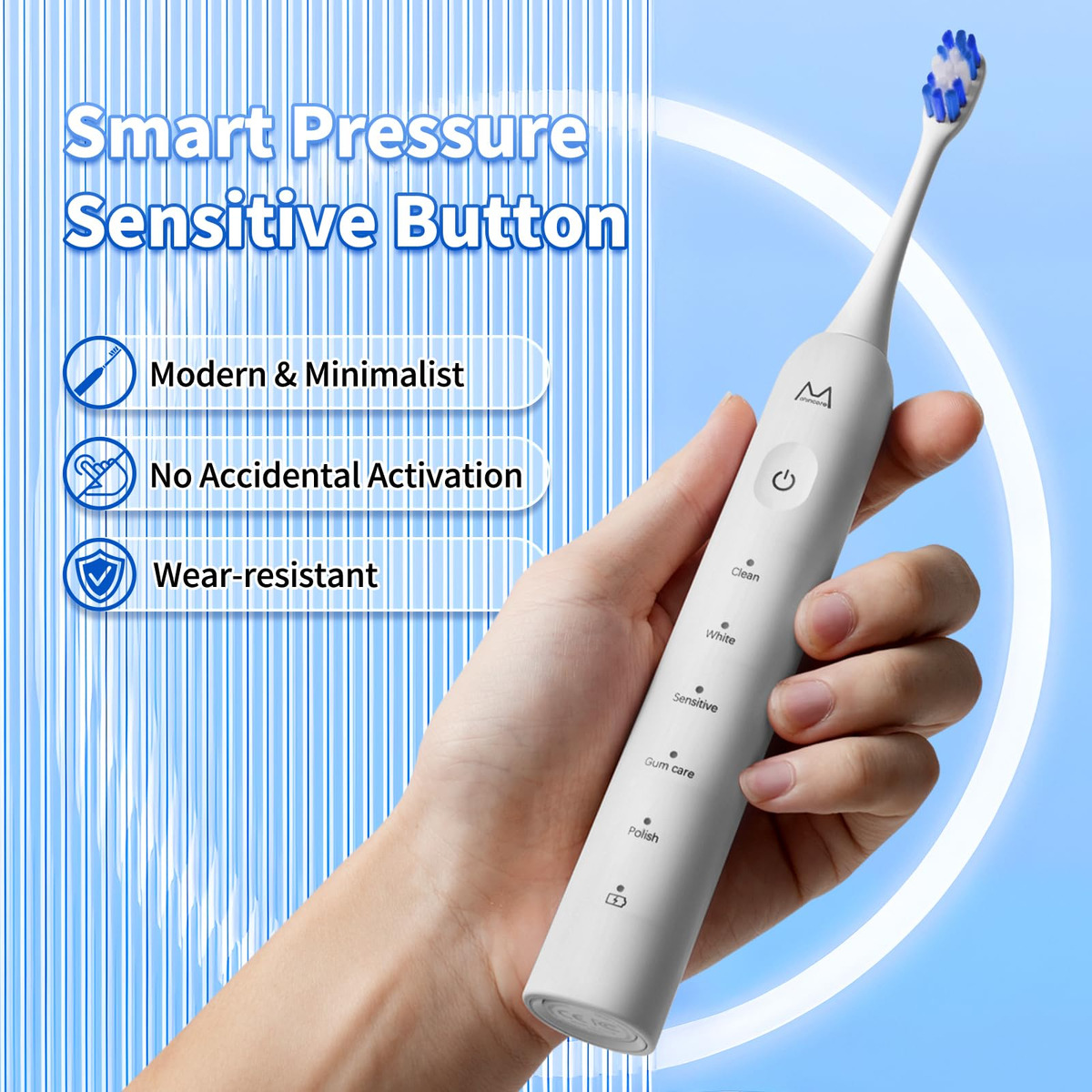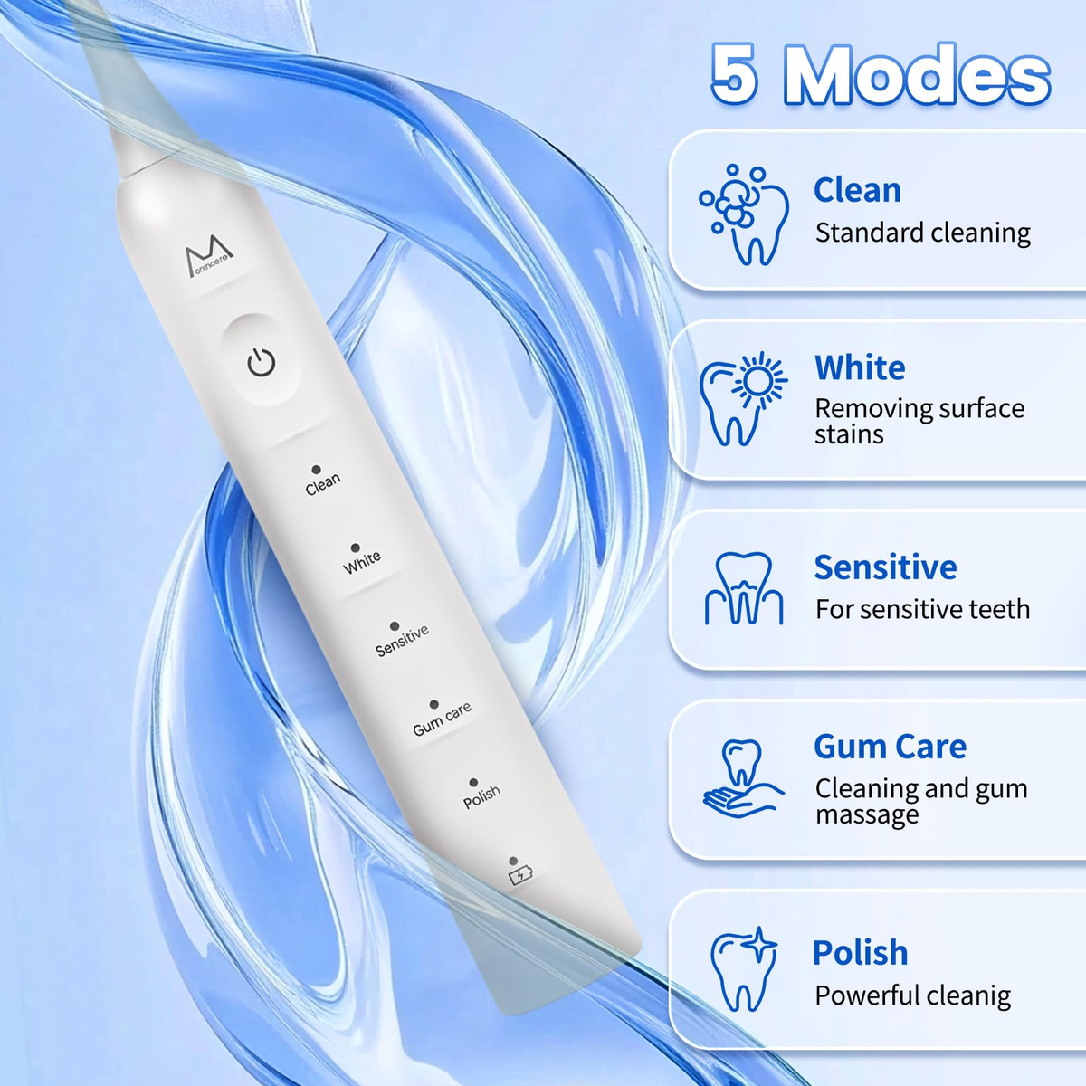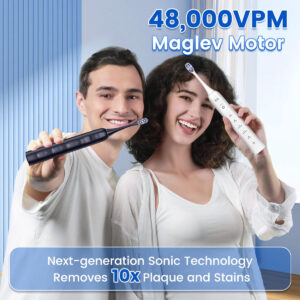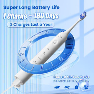 Uma escova de dentes elétrica sônica oferece várias vantagens em relação a uma escova manual comum, graças às suas vibrações de alta velocidade que geram fluxo dinâmico de água. Esse recurso exclusivo fornece um poder de limpeza superior, removendo com eficácia a placa bacteriana e os detritos da superfície dos dentes. Além disso, atinge áreas difíceis de limpar com uma escova manual, como os espaços entre os dentes, ao longo da linha da gengiva e nas ranhuras dos dentes, garantindo que a pasta de dente alcance todas as partes dos dentes, fornecendo proteção completa. – UM GRANDE SALTO NA VIDA ÚTIL DA BATERIA: esta escova de dentes elétrica possui uma bateria de última geração que fornece até 180 dias de uso (com base em dois usos de 2 minutos por dia) com uma carga de 4 horas. Construída para durar, a escova de dentes sônica mantém o desempenho ideal durante anos de carregamento repetido, superando o desempenho de produtos similares. Com uma duração de bateria ultralonga, esta escova de dentes elétrica sônica oferece tranquilidade sem precisar carregar um carregador ou se preocupar com a falta de energia. Apenas pegue e vá! – BOTÃO SENSÍVEL À PRESSÃO SEM COSTURA Elegância que dura: esta escova de dentes elétrica branca recarregável possui um botão sensível à pressão de última geração, perfeitamente integrado à alça para uma aparência elegante e minimalista. O design do botão evita a ativação acidental e resiste ao desgaste causado pelo uso frequente, durando 5 vezes mais do que um botão padrão. A elegante escova de dentes automática adiciona um toque de elegância moderna à decoração do seu banheiro. – TECNOLOGIA SÔNICA AVANÇADA Perfeitamente projetada para limpeza: alimentada por um motor Maglev de última geração, esta escova de dentes elétrica para adultos e adolescentes oferece até 48.000 movimentos de escova por minuto, gerando microbolhas e fluxos finos de água que penetram profundamente nas bolsas gengivais, aberturas dentárias e fissuras, para remover 10 vezes a placa bacteriana e manchas, distribuindo pasta de dente para proteção superior. Desfrute de um nível de limpeza e eficiência como nunca antes em sua rotina de atendimento odontológico! – DESIGN IMPERMEÁVEL E ERGONÔMICO IPX8: Esta escova de dentes elétrica classificada com um padrão IPX8 à prova d'água oferece resistência superior à água para enxágue e uso seguros no chuveiro. A alça ergonômica e antiderrapante garante uma aderência confortável e segura. Feita de materiais de alta qualidade, esta escova de dentes vibratória é feita para durar, garantindo durabilidade e desempenho confiável. – 5 MODOS DE LIMPEZA PERSONALIZÁVEIS: escolha entre cinco modos: Limpo, Branco, Sensível, Gum Care e Polish para personalizar sua experiência de escovação. Se você precisa de cuidados delicados, clareadores ou limpeza profunda, esta maravilhosa escova de dentes recarregável oferece uma solução personalizada para cada necessidade de higiene bucal. – TEMPORIZADOR EMBUTIDO, MOTOR SILENCIOSO: A escova de dentes inteligente tem um cronômetro de 2 minutos com intervalos de 30 segundos que garante a escovação no momento ideal, promovendo os melhores hábitos de atendimento odontológico recomendados pelos profissionais da área bucal. Além disso, a escova de dentes eletrônica tem um motor silencioso que opera a menos de 55 dB, garantindo uma experiência de escovação tranquila. – O que vem na caixa: o pacote inclui 1 alça de escova de dentes elétrica branca, 1 cabo de carregamento USB-C, 1 manual do usuário e 4 cabeças de escova de dentes de alta qualidade que duram um ano inteiro (em forma de W e 2 em forma de C). Feitas com cerdas de ponta redonda de qualidade alimentar que não se soltam, essas cabeças de escova proporcionam uma limpeza suave e completa, protegendo o esmalte e as gengivas sensíveis dos dentes.