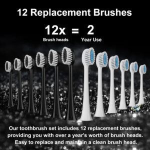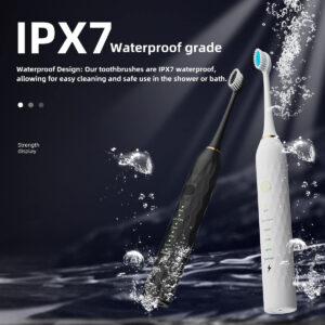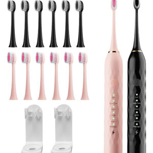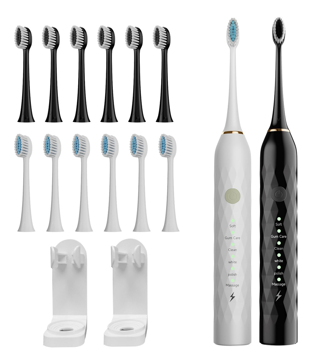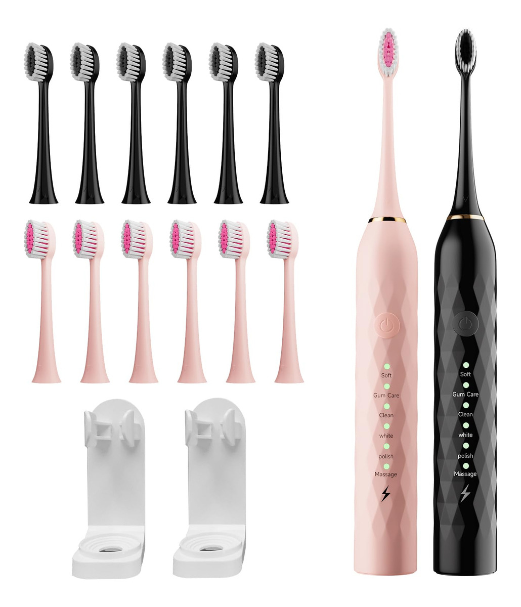 Experimente o auge da higiene bucal com nosso conjunto de escovas de dentes elétricas Sonic Premium. Projetada para adultos e crianças, esta escova de dentes oferece uma série de recursos que facilitam sua rotina diária de higiene bucal. Consiga uma limpeza profunda: com sua poderosa tecnologia sônica, esta escova de dentes produz impressionantes 40.000 vibrações por minuto (VPM), garantindo uma limpeza profunda e completa de seus dentes e gengivas. Diga adeus à placa e olá a um sorriso deslumbrante. Modos de escovação personalizados: escolha entre 5 modos de escovação diferentes para atender às suas necessidades – seja uma limpeza suave, clareamento, polimento ou uma massagem estimulante na gengiva, temos tudo o que você precisa. Além disso, é suave o suficiente para dentes e gengivas sensíveis. Bateria de longa duração: uma carga completa fornece incríveis 90 dias de uso (com base em dois usos por dia). Chega de recarregar constantemente sua escova de dentes. É perfeito para uso doméstico ou quando você está em trânsito. Carregamento rápido e conveniente: quando finalmente chega a hora de recarregar, nossa tecnologia de carregamento rápido deixa sua escova de dentes pronta para a ação em apenas algumas horas. Chega de esperar por uma carga completa. Amplas cabeças de escova: com um total de 8 cabeças de escova incluídas no conjunto, você terá o suficiente para 2 anos de escovação diária. Essas cabeças de escova Dupont de alta qualidade são projetadas para alcançar todos os cantos e recantos para uma limpeza abrangente. Smart Timer: Nunca mais se preocupe em escovar pela quantidade certa de tempo. O cronômetro inteligente de 2 minutos integrado garante que você escove pela duração recomendada pelo dentista e lembra que você deve mudar para diferentes áreas da boca a cada 30 segundos. Adequado para viagens: Vai fazer uma viagem? Não se esqueça de levar sua escova de dentes. O conjunto inclui um prático estojo de viagem para manter sua escova de dentes e cabeças de escova organizadas e limpas em suas viagens. Design elegante: nossas escovas de dente vêm em opções chiques de rosa e preto, para que você possa escolher a que combina com seu estilo. Atualize sua rotina de higiene bucal com o conjunto de escovas de dentes elétricas Premium Sonic. Diga olá para uma pessoa mais saudável – Limpeza sônica avançada: aproveitando a mais recente tecnologia sônica, esta escova de dentes elétrica fornece até 31.000 vibrações por minuto, garantindo uma limpeza excepcional ao longo da linha da gengiva. Experimente uma redução de 98,76% na placa bacteriana e no clareamento perceptível dos dentes em duas semanas, superando a escovação manual – Experiência de escovação personalizável: escolha entre 6 modos de escovação de alto desempenho (suave, cuidado com as gengivas, limpo, branco, polimento, massagem). Adapte sua rotina de escovação para atender às suas necessidades específicas de higiene bucal, guiado pelas recomendações do dentista – Cabeças de escova de longa duração e porta-escovas de dentes de banheiro: receba 10 cabeças de escova de reposição com um design exclusivo em forma de “W”. Essas cabeças são suaves para as gengivas e limpam com eficácia até mesmo áreas de difícil acesso. Com cada cabeça de escova durando 3 meses, este conjunto fornecerá 15 meses de escovação – Cronômetro e notificação inteligentes: o cronômetro embutido garante que você escove pelos 2 minutos recomendados, com uma pausa a cada 30 segundos para lembrá-lo de passar para o próximo quadrante. Esse método de escovação é aprovado por dentistas para uma saúde bucal ideal – vida útil prolongada da bateria e design à prova d'água: uma única carga pode alimentar 60 dias de uso normal (2 vezes por dia). A classificação IPX7 à prova d'água permite o uso seguro na banheira ou no chuveiro, tornando-a uma adição versátil e durável à sua rotina de higiene bucal.