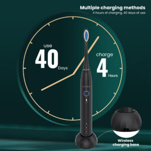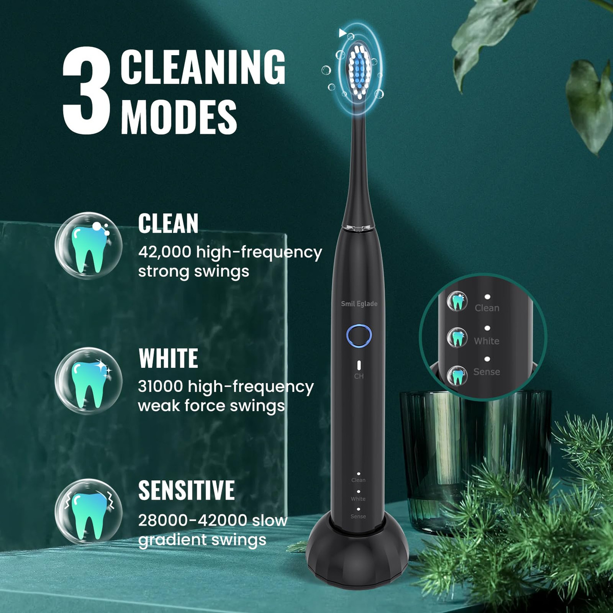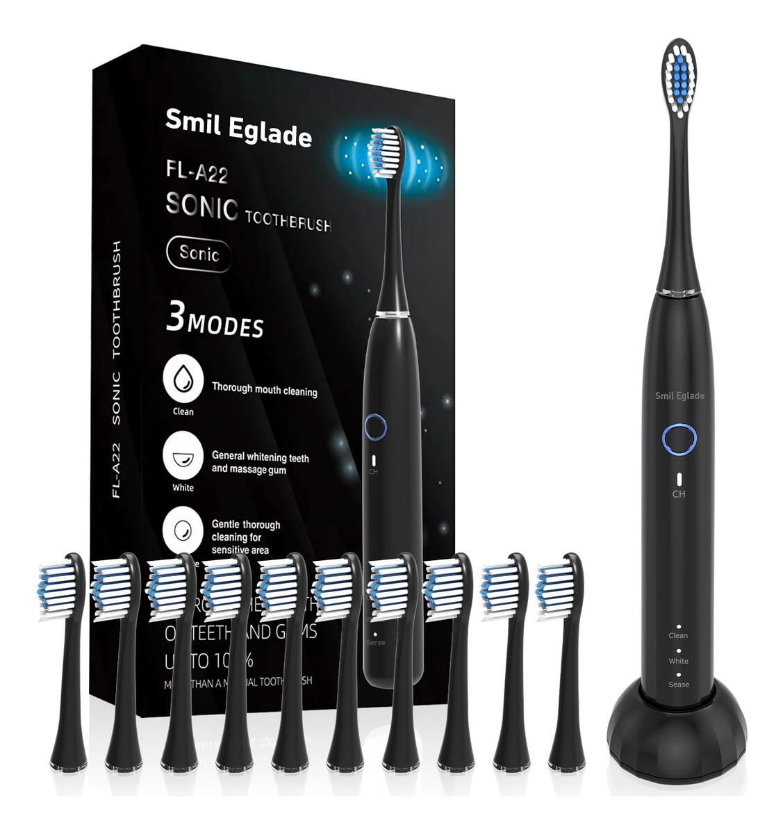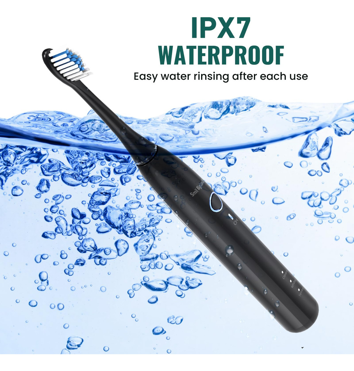 Escova de dentes elétrica sônica para adultos – Desempenho de limpeza superior: nossa escova de dentes elétrica para adultos apresenta tecnologia sônica avançada que oferece até 42.000 golpes por minuto. Esta escova de dentes sônica oferece desempenho de limpeza superior, removendo eficazmente a placa bacteriana e promovendo a saúde da gengiva, semelhante a uma limpeza dental profissional. – 3 modos de limpeza: nossa escova de dentes oferece vários modos de limpeza – limpa, branca e sensível – permitindo que você personalize sua experiência de escovação de acordo com suas necessidades. Esta escova de dentes compacta para viagem é perfeita para cuidados bucais em qualquer lugar e fácil de embalar. – Ideal para uso no chuveiro ou na banheira: nossa escova de dentes elétrica à prova d'água IPX7 permite que você leve sua rotina de atendimento odontológico para o chuveiro ou banheira. É uma escova de dentes de viagem ideal para pessoas em trânsito que precisam economizar tempo em sua rotina. Também é uma escova de dentes eletrônica que pode ser recarregada facilmente. – Bateria de longa duração: nossa escova de dentes elétrica vem equipada com uma bateria de longa duração que fornece até 70 dias de uso com uma única carga. Esta escova de dentes automática é conveniente, pois não requer carregamento constante. – Garantia de satisfação: confiamos na qualidade de nossa escova de dentes elétrica sônica e oferecemos uma garantia de satisfação.