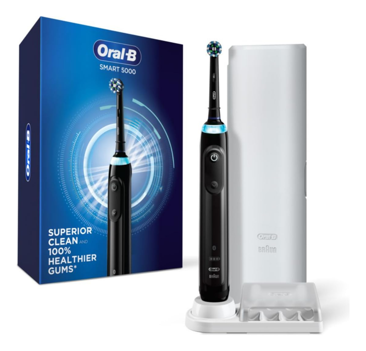 Escova de dentes elétrica recarregável elétrica Oral-B Pro 5000 Smartseries com conectividade Bluetooth, edição preta – Gengivas totalmente limpas e 100% mais saudáveis* *versus uma escova de dentes manual comum – A comunicação Bluetooth fornece feedback em tempo real sobre os hábitos de escovação – A ação de limpeza 3D oscila, gira e pulsa para quebrar a placa bacteriana e remover mais placa bacteriana ao longo da linha gengival do que uma escova de dentes manual comum – O sensor de pressão acende na escova e no smartph1 se você escove com muita força. 5 modos: limpeza diária, cuidado com as gengivas, sensibilidade, clareamento e limpeza profunda – para manter o capacidade máxima da bateria recarregável, desconecte a unidade de carregamento e descarregue totalmente a alça com uso regular pelo menos a cada 6 meses – Inclui estojo e carregador