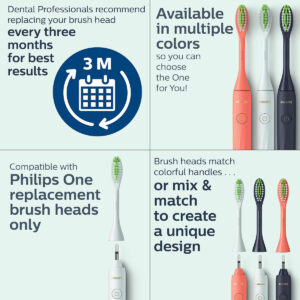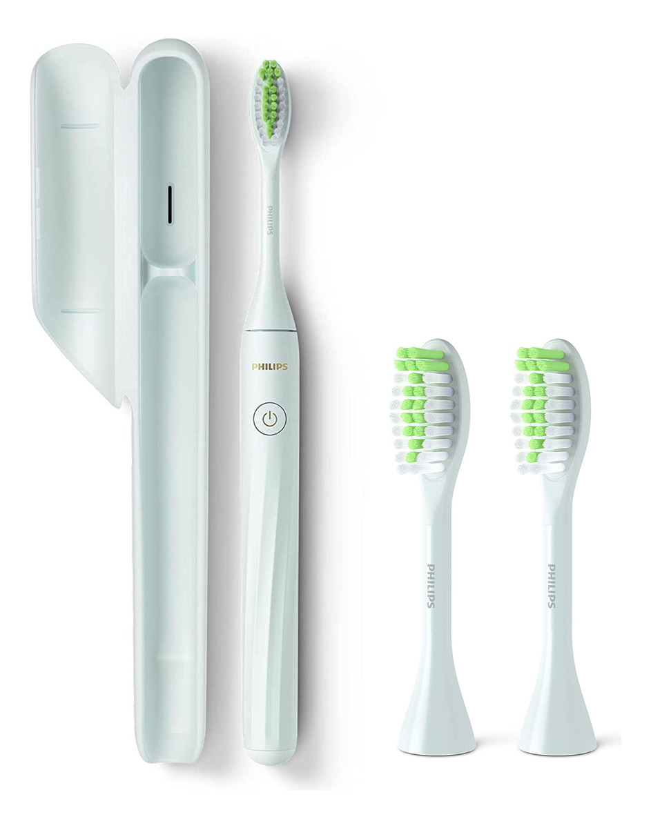 Escova de dentes Philips Sonicare One, escova de dentes elétrica alimentada por bateria com estojo de viagem elegante e 2 cabeças de escova – azul menta, HY100/01 – MICROVIBRAÇÕES E CERDAS CÔNICAS – Pense na One como uma versão elétrica de sua escova de dentes manual. Microvibrações e cerdas contornadas limpam e polem suavemente os dentes com o toque de um botão. – Design colorido e estojo de viagem elegante. As cabeças da escova combinam com uma alça colorida para uma aparência super elegante. Como seu próprio companheiro de viagem. Onde quer que você vá, este vai com você. É uma capa elegante, leve e portátil para quando você estiver em movimento. – CRONÔMETRO DE 2 MINUTOS COM NOTIFICAÇÕES DE 30 SEGUNDOS – Às vezes, todos nós precisamos de um pouco de orientação. O One vibra a cada 30 segundos, incentivando você a passar para a próxima parte da boca. Um zumbido mais longo em 2 minutos permite que você saiba quando o trabalho está concluído. – 3 MESES DE DURAÇÃO DA BATERIA – Com 3 pilhas AAA incluídas. Pincele com o One por 90 dias com uma única bateria AAA. São três meses de sorrisos mais brancos e brilhantes. – Uma cor para cada estilo – O pincel é compatível somente com as alças Philips One da Sonicare. Vem com 2 cabeças de escova extras para trocar sempre que quiser