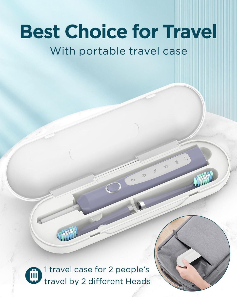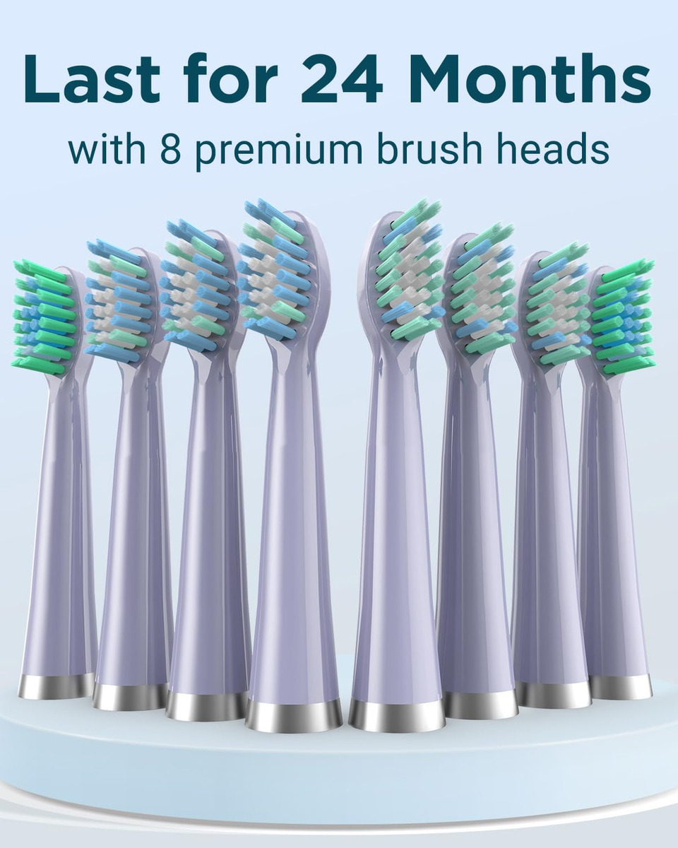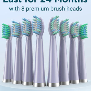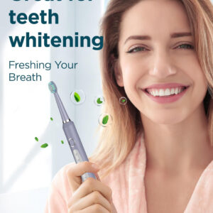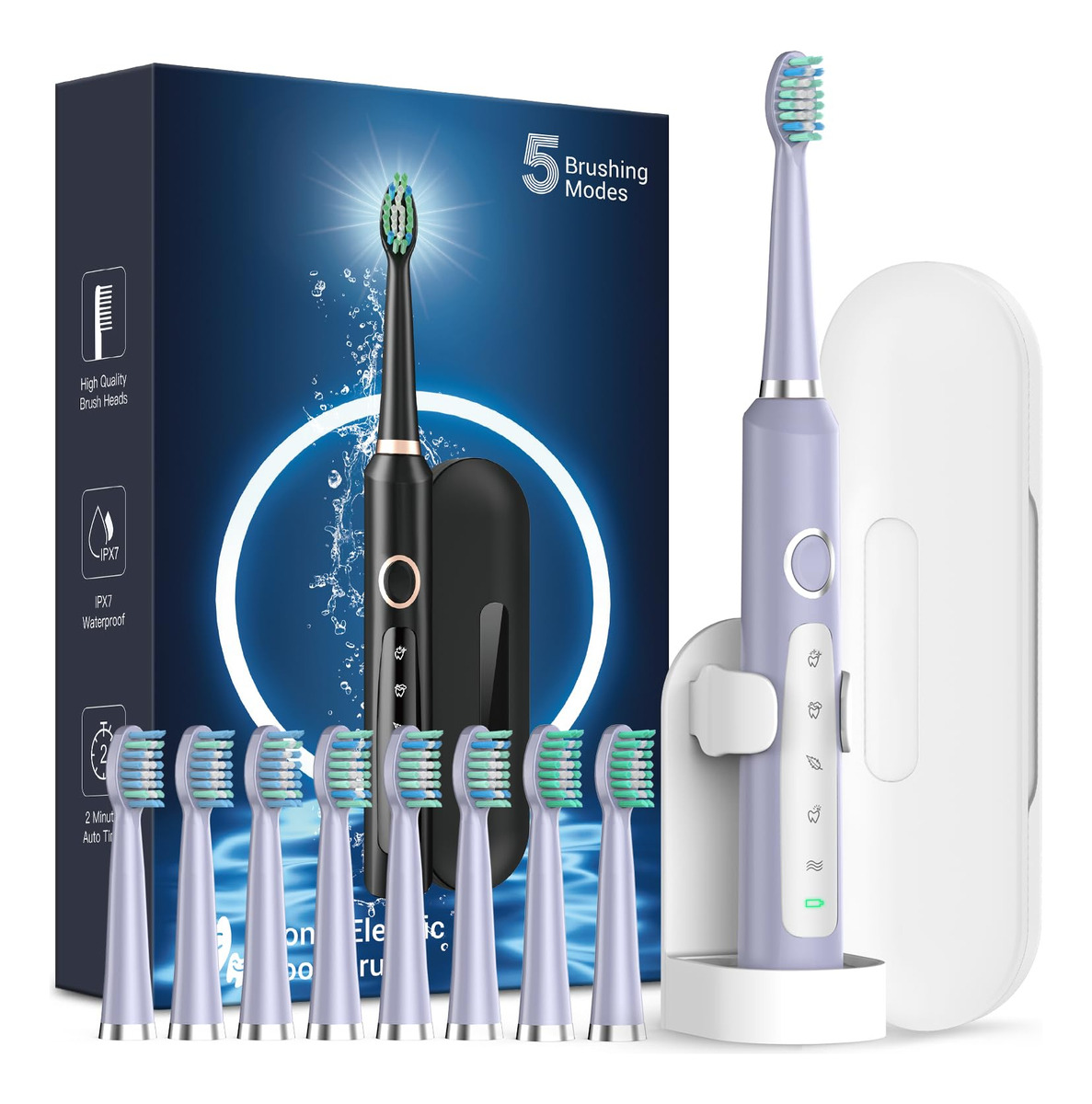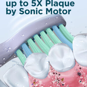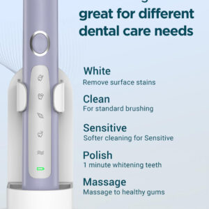 Escova de dentes elétrica sônica Rtauys M5 para adultos e crianças – Escova de dentes elétrica recarregável para crianças maiores de 12 anos e adultos com 8 cabeças de escova e estojo de viagem, 120 dias de duração da bateria – roxa clara – Potência de limpeza superior: a escova de dentes elétrica sônica fornece impressionantes 41.000 vibrações de alta frequência por minuto, proporcionando uma limpeza profunda e completa que é 5 vezes mais eficaz do que as escovas de dente elétricas de baixa frequência para adultos e crianças. Limpe até 5 vezes a placa bacteriana e as manchas superficiais para um sorriso mais saudável e brilhante. – Escova de dentes elétrica clareadora de dentes: a tecnologia avançada de clareamento em uma escova de dentes elétrica para adultos ajuda a clarear os dentes com o uso consistente, deixando você com um sorriso mais radiante. O cronômetro embutido de 2 minutos e a função de lembrete de 30 segundos garantem um tempo de escovação recomendado cientificamente, e os 5 modos de escovação oferecem uma experiência de limpeza personalizada que atende às suas necessidades exclusivas de higiene bucal. – 8 cabeças de escova, incluindo 2 cabeças sensíveis, por 2 anos para economizar dinheiro: a escova de dentes elétrica recarregável vem com 8 cabeças de escova de reposição premium, incluindo 2 cabeças de escova sensíveis especialmente projetadas para dentes sensíveis, protegendo dentes e gengivas. A escova de dentes elétrica sônica para adultos foi projetada para fornecer 24 meses de uso e economizar dinheiro na compra de novas escovas de dente elétricas para adultos. – 5 modos de escovação para todas as necessidades de higiene bucal: esta escova de dentes elétrica recarregável para adultos oferece 5 modos de escovação diferentes, incluindo limpeza, clareamento, sensibilidade, cuidados com as gengivas e massagem, para atender às diferentes necessidades de limpeza e cuidado. Você também pode desligar a escova de dentes elétrica em qualquer modo pressionando o botão por 2 segundos. – 120 dias de duração da bateria e conveniência de viagem: esta poderosa escova de dentes elétrica requer apenas 3 horas para carregar totalmente e pode durar até 120 dias de uso. O estojo e o suporte de viagem requintados e portáteis tornam esta escova de dentes elétrica para adultos ótima para viagens e viagens de negócios, para que você possa sempre manter uma boa higiene bucal em qualquer lugar.